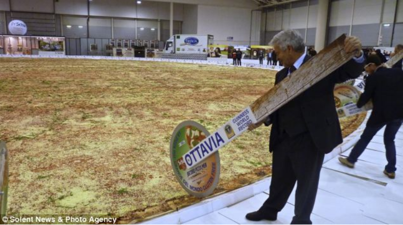 Историческая родина пиццы - Италия, в 2012 году вернула, наконец, себе лидерство по изготовлению наибольшей пиццы в мире. Предыдущий рекорд был установлен в 1990 году одним из южноафриканских супермаркетов, которым была выпечена пицца диаметром 40 метров.