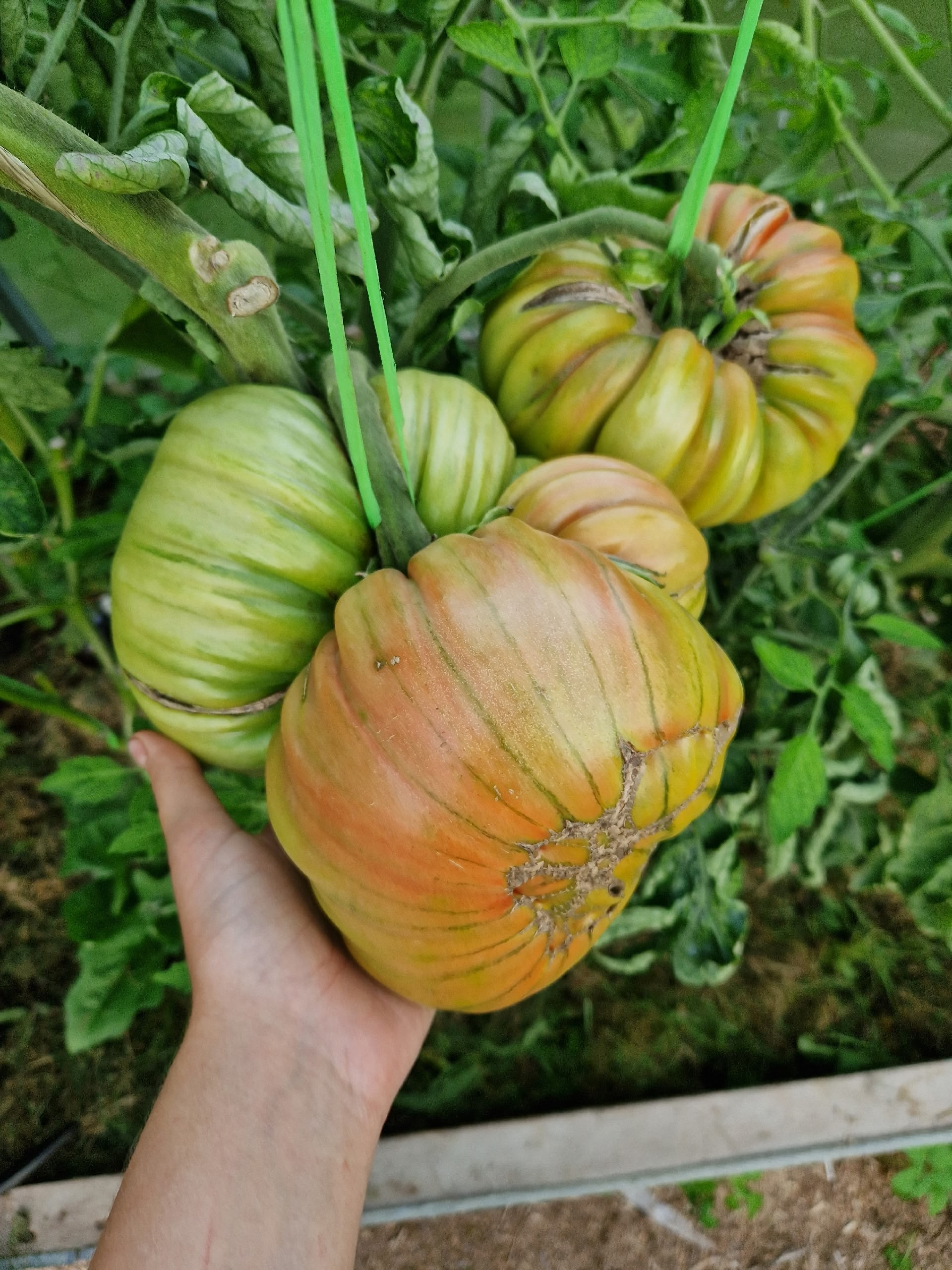 Кстати этот томат выращен из семян наших томатов, руководителя Клуба Овощеводов Гигантоводов, которые выращивали в прошлом году в Ботаническом Саду МГУ на Ленинских горах. Выращивали без теплиц, на органике, без формировки и тогда уже впечатлил это сорт результатами👇