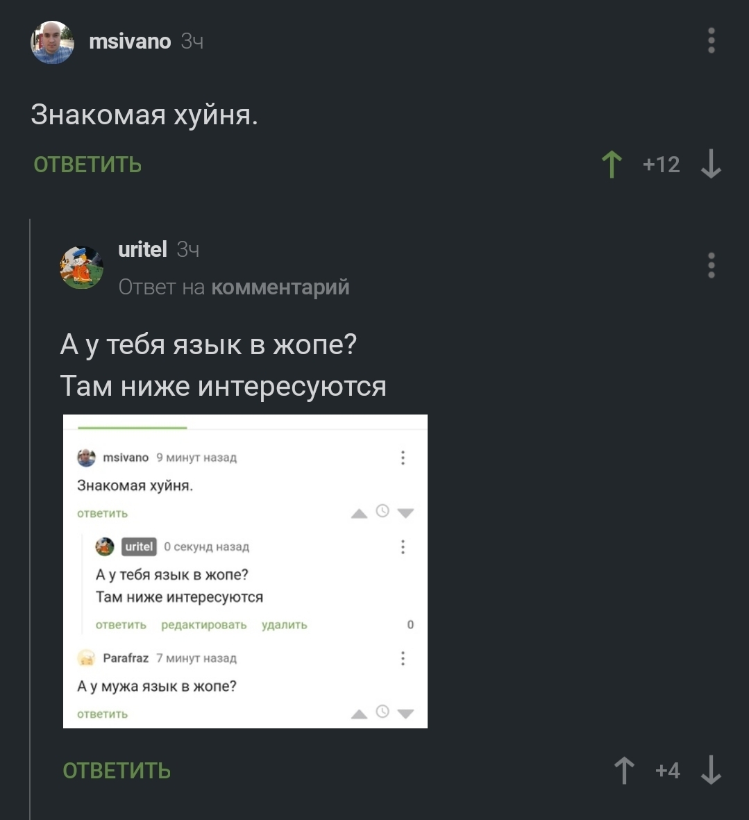 dmtrkrl Рекурсия 4 года назад #comment_223936041 Скриншот Комментарии на Пикабу Рекурсия Комментарии Ещё 0