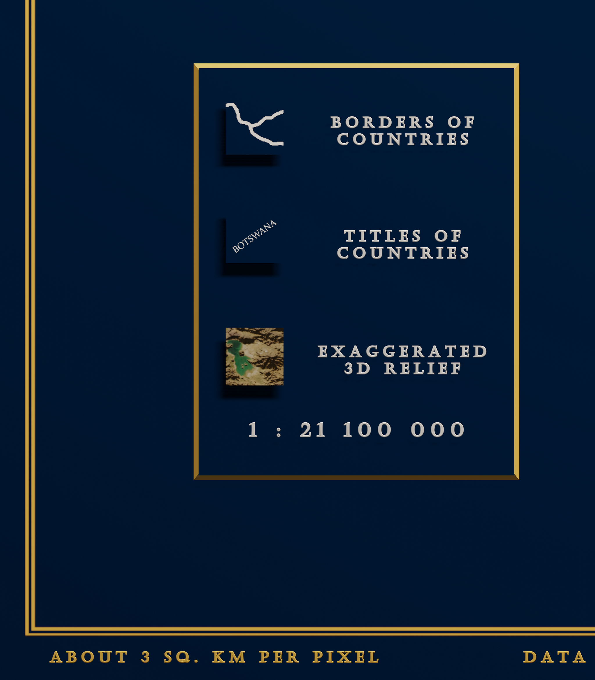 Карта оформлена в темно-синих и золотых цветах. Добавлена легенда (конечно, исключительно как декоративный элемент):