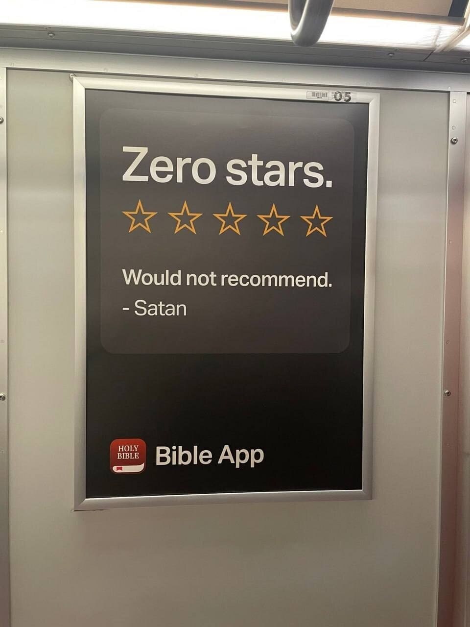 17 wowreklama WOW реклама Религиозный маркетинг тоже бывает креативным 1 месяц назад «Ноль звезд, не рекомендую», — отзыв Сатаны к приложению с библией Боги маркетинга Креатив Юмор 3 1 1 Ещё 0