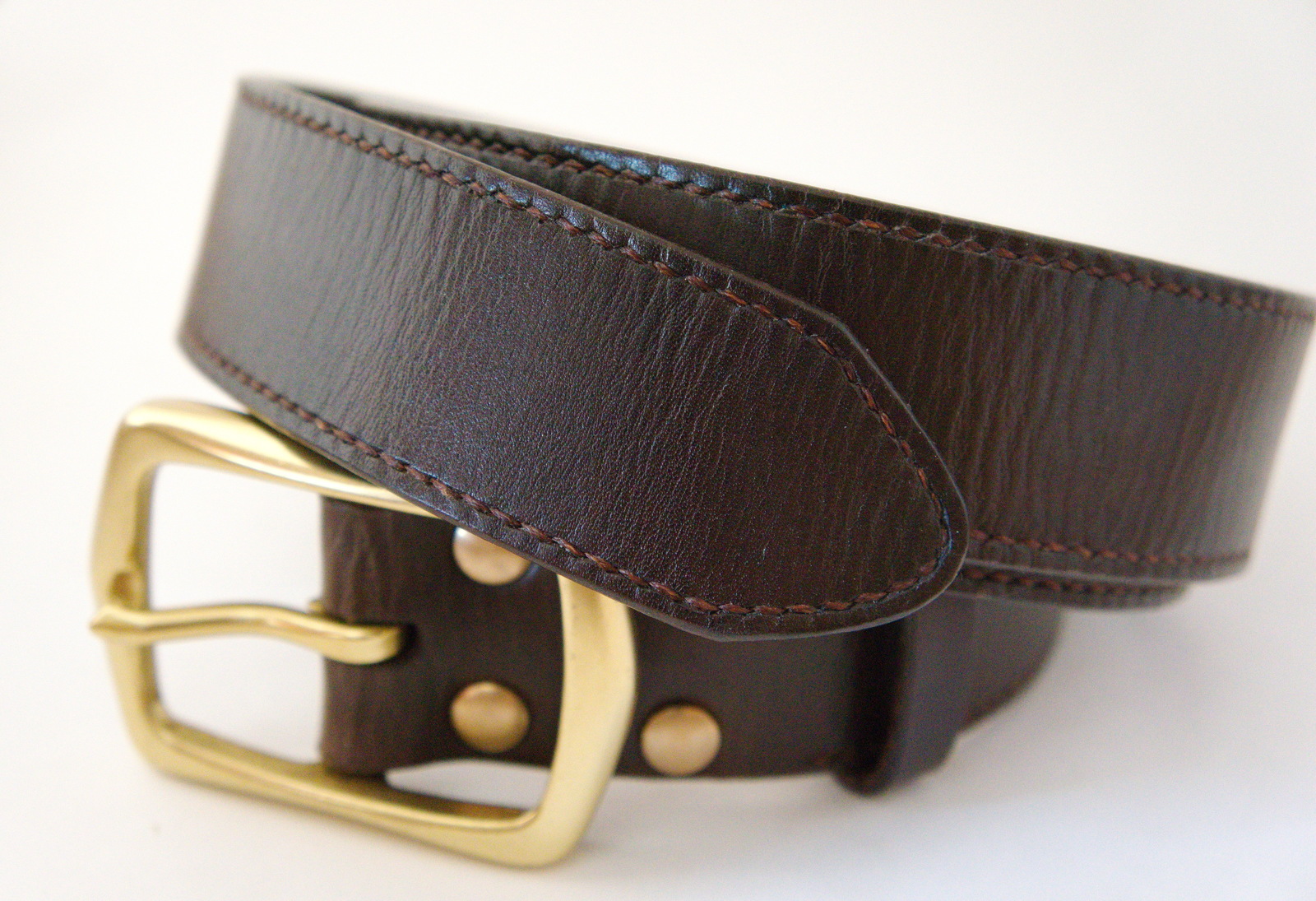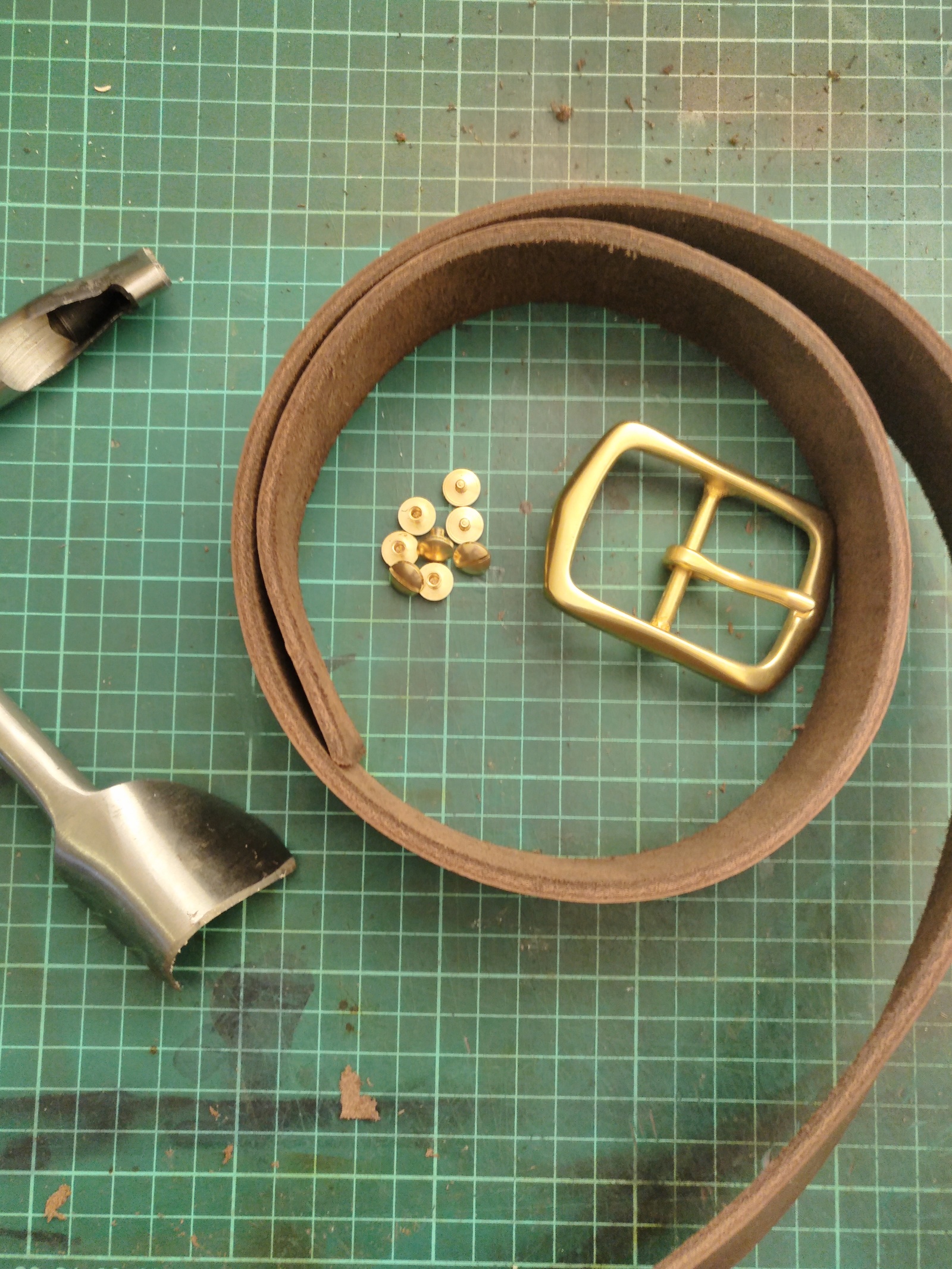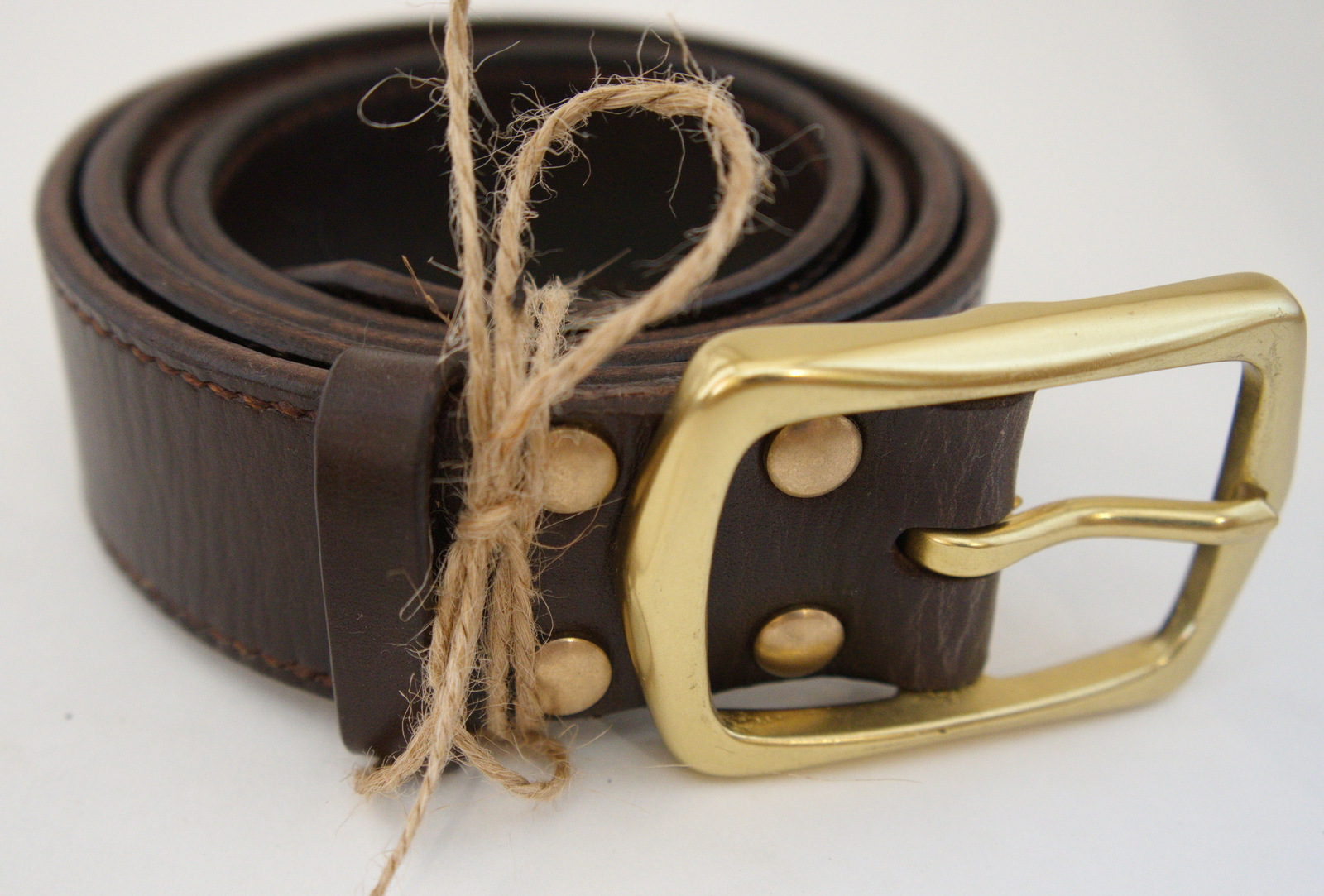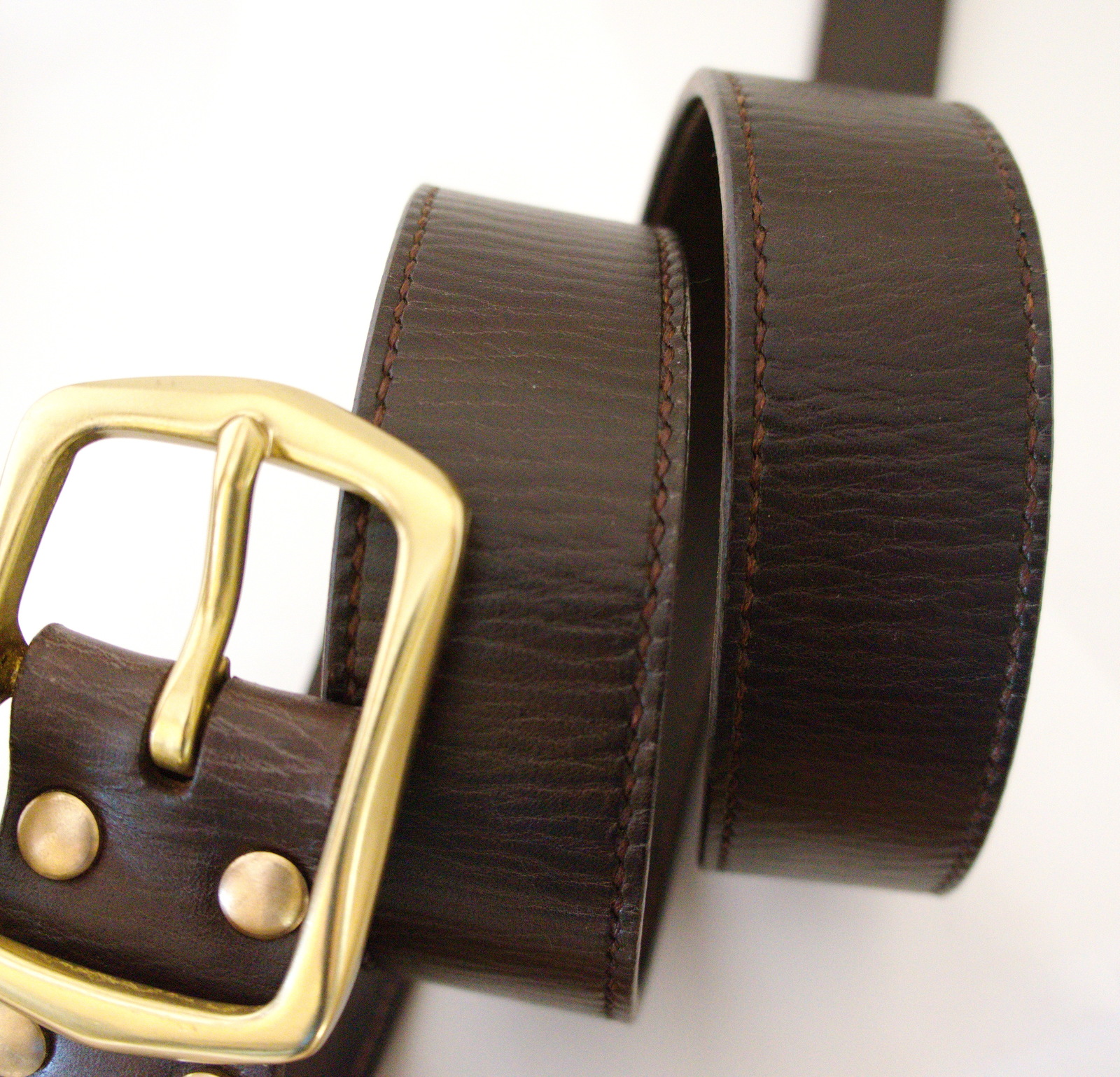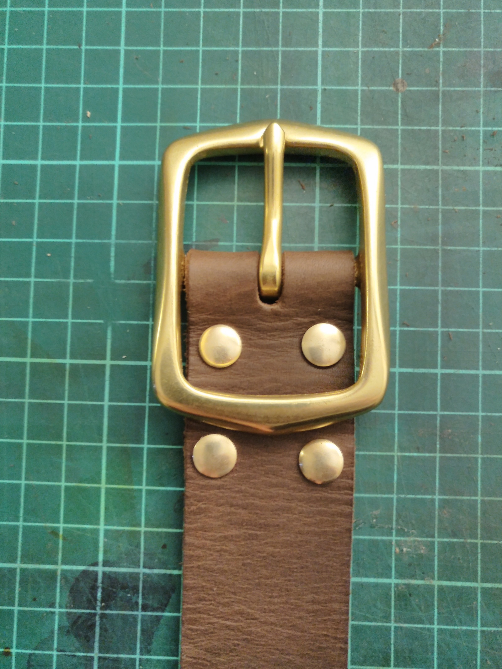 Кожа коричневая, толщиной 4.5мм, пряжка и ременные винты латунные.