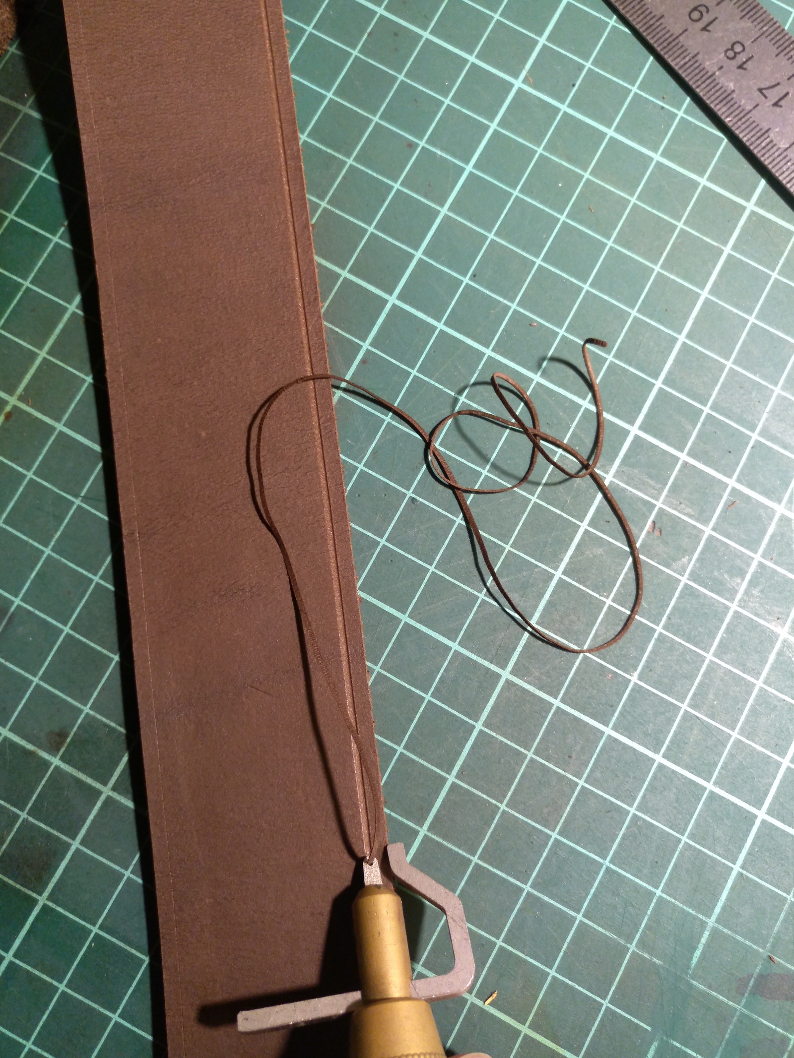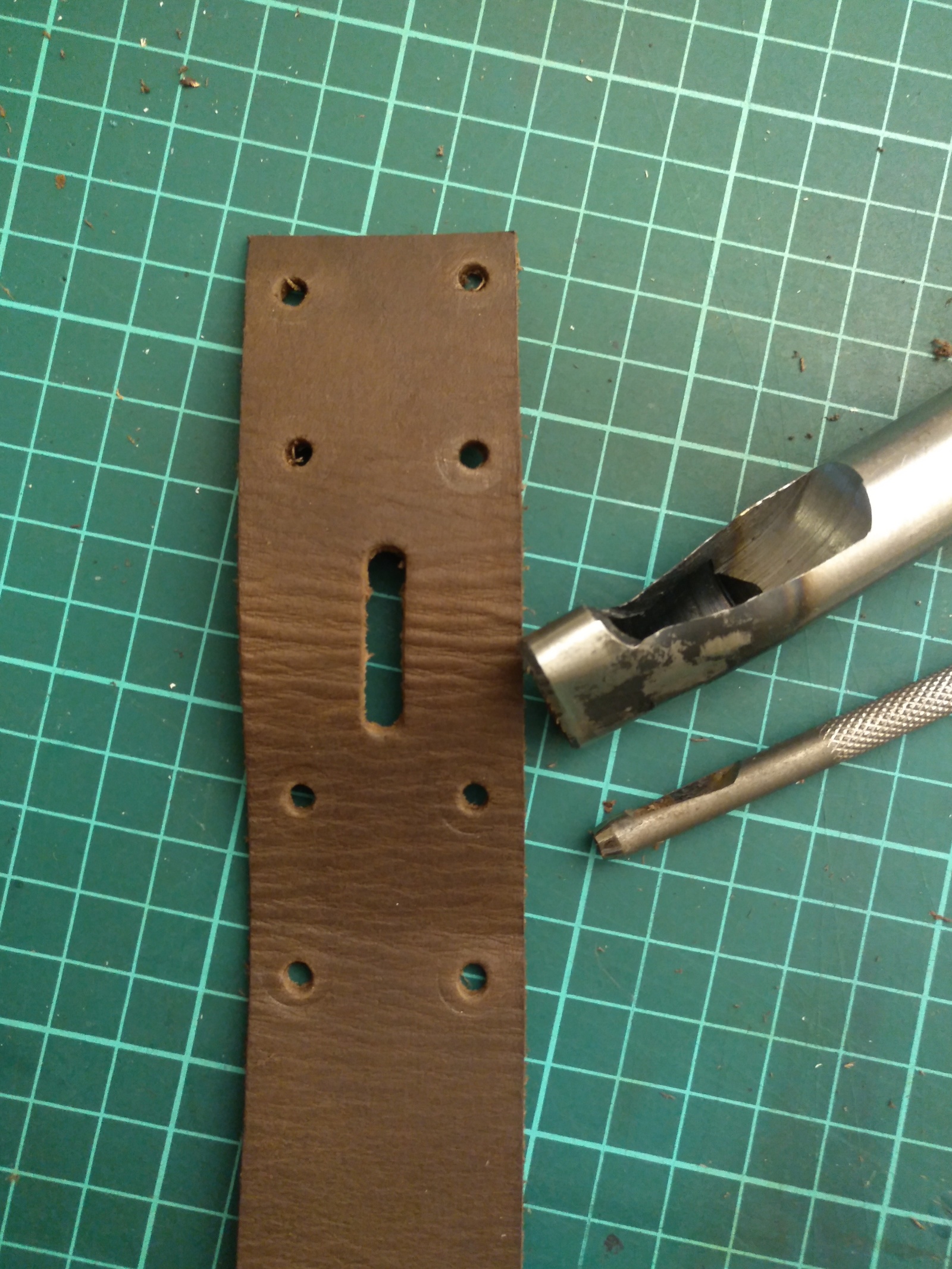 После канавки можно и прошить......прошииить.... Пробойники с шагом 3.85, косые, стежков вышло около 700, нифга не веселое и не быстрое это занятие )).