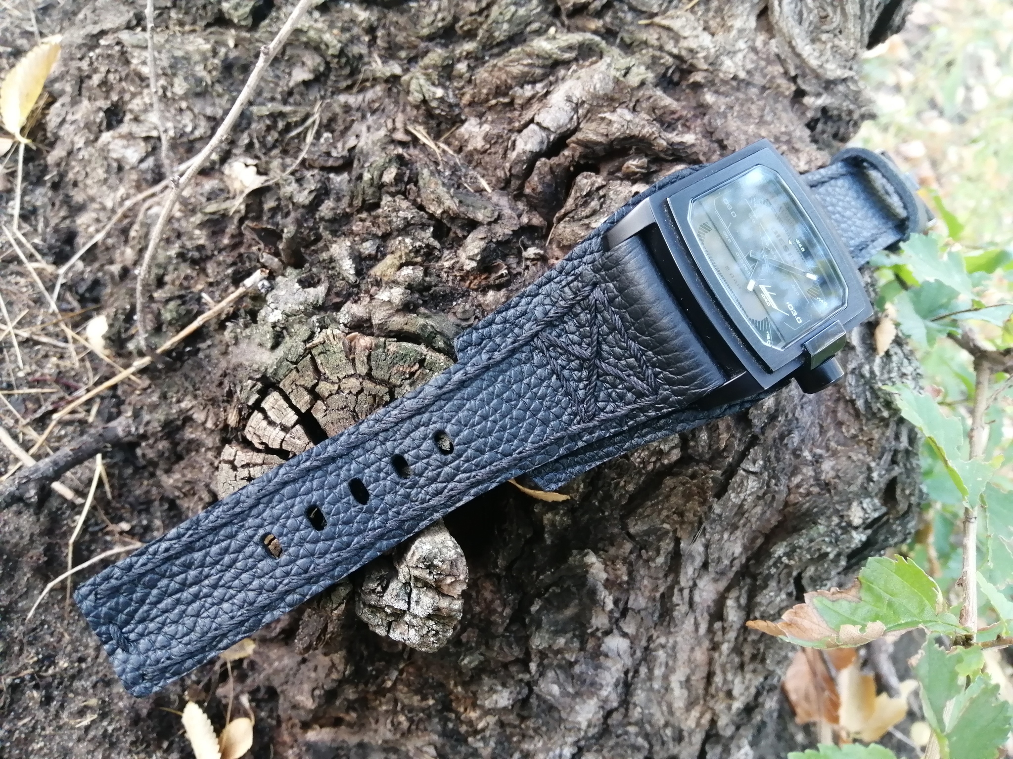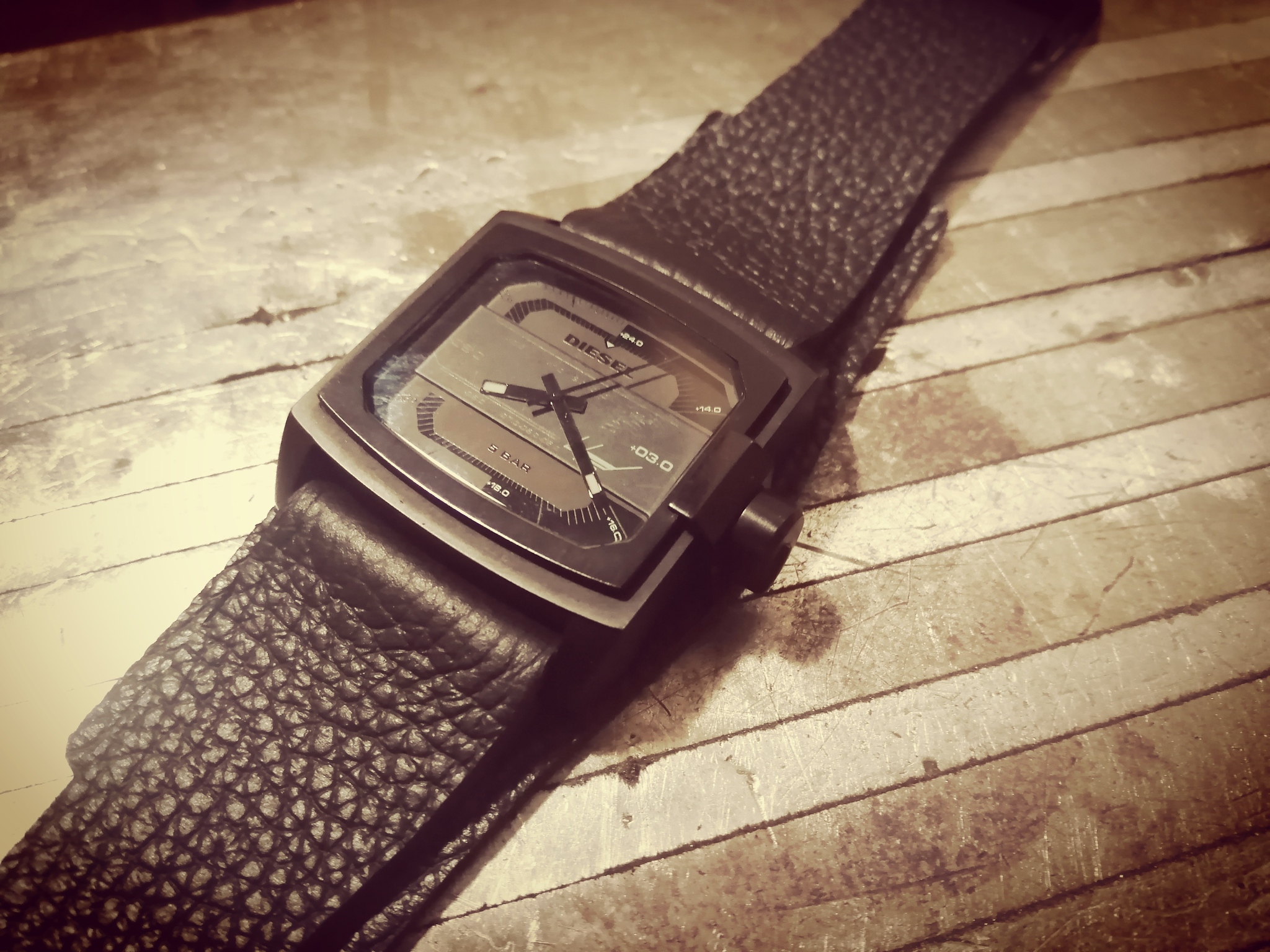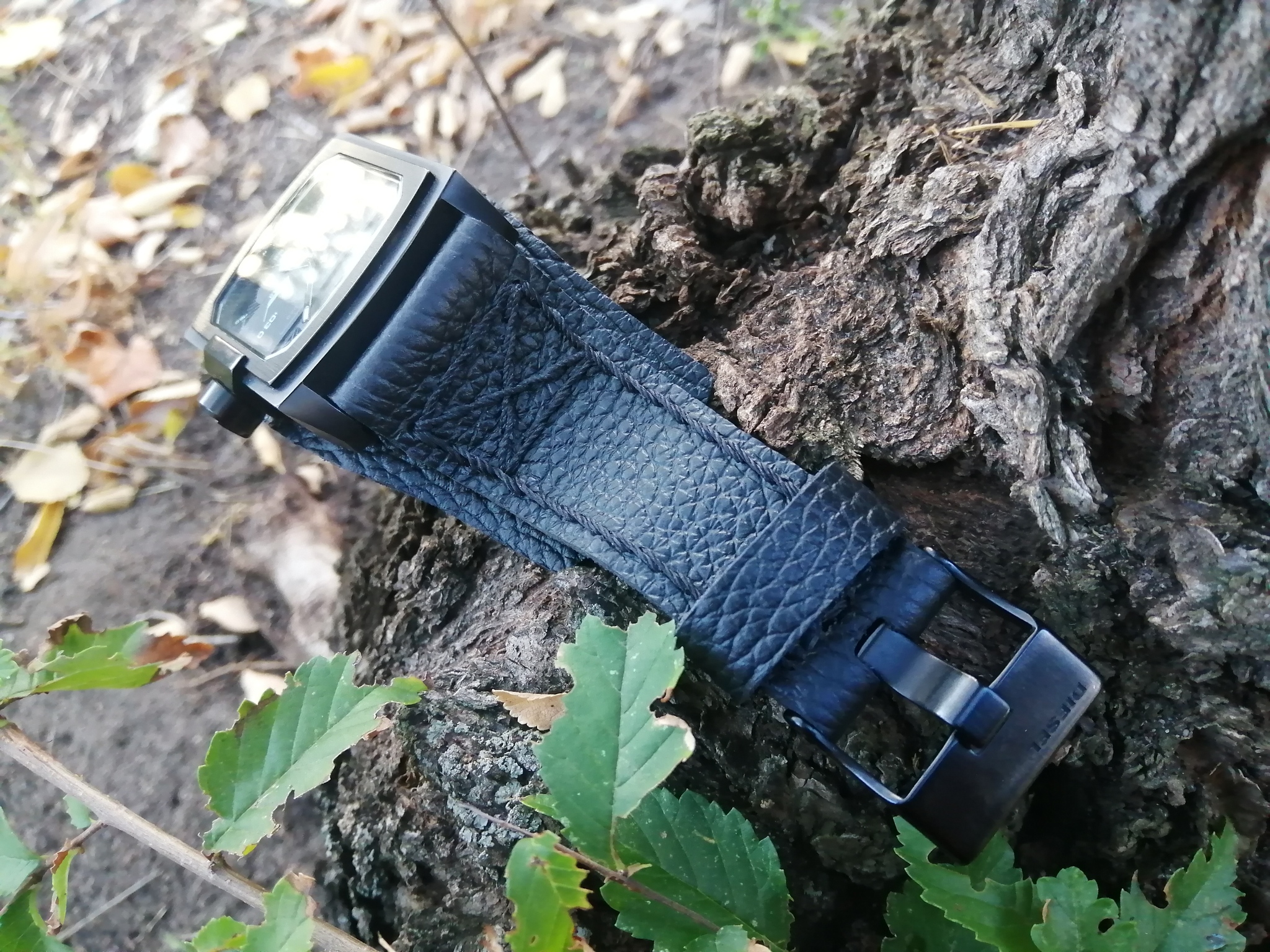 Ремешок напульсник для часов Diesel черного цвета с прошивкой.