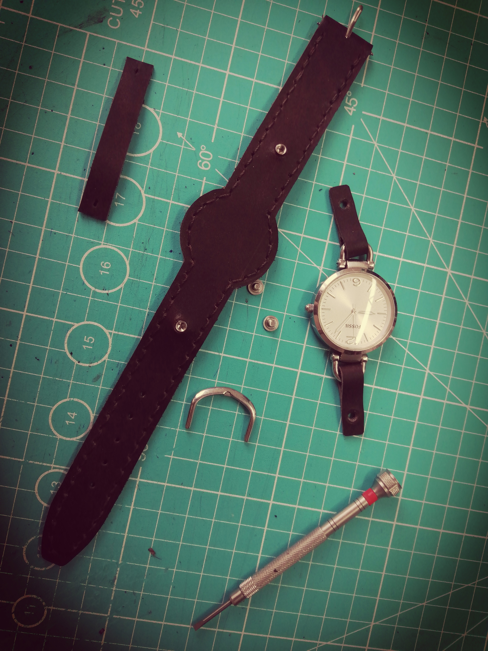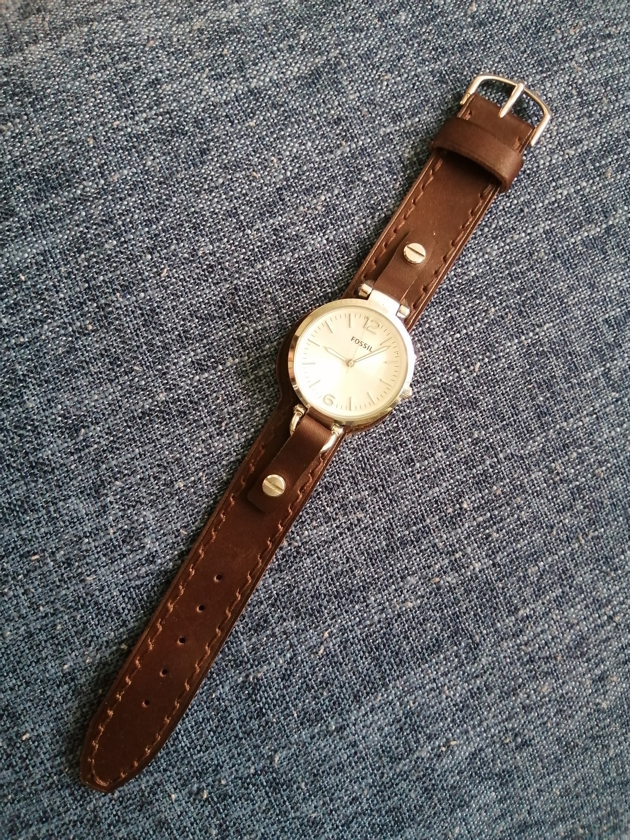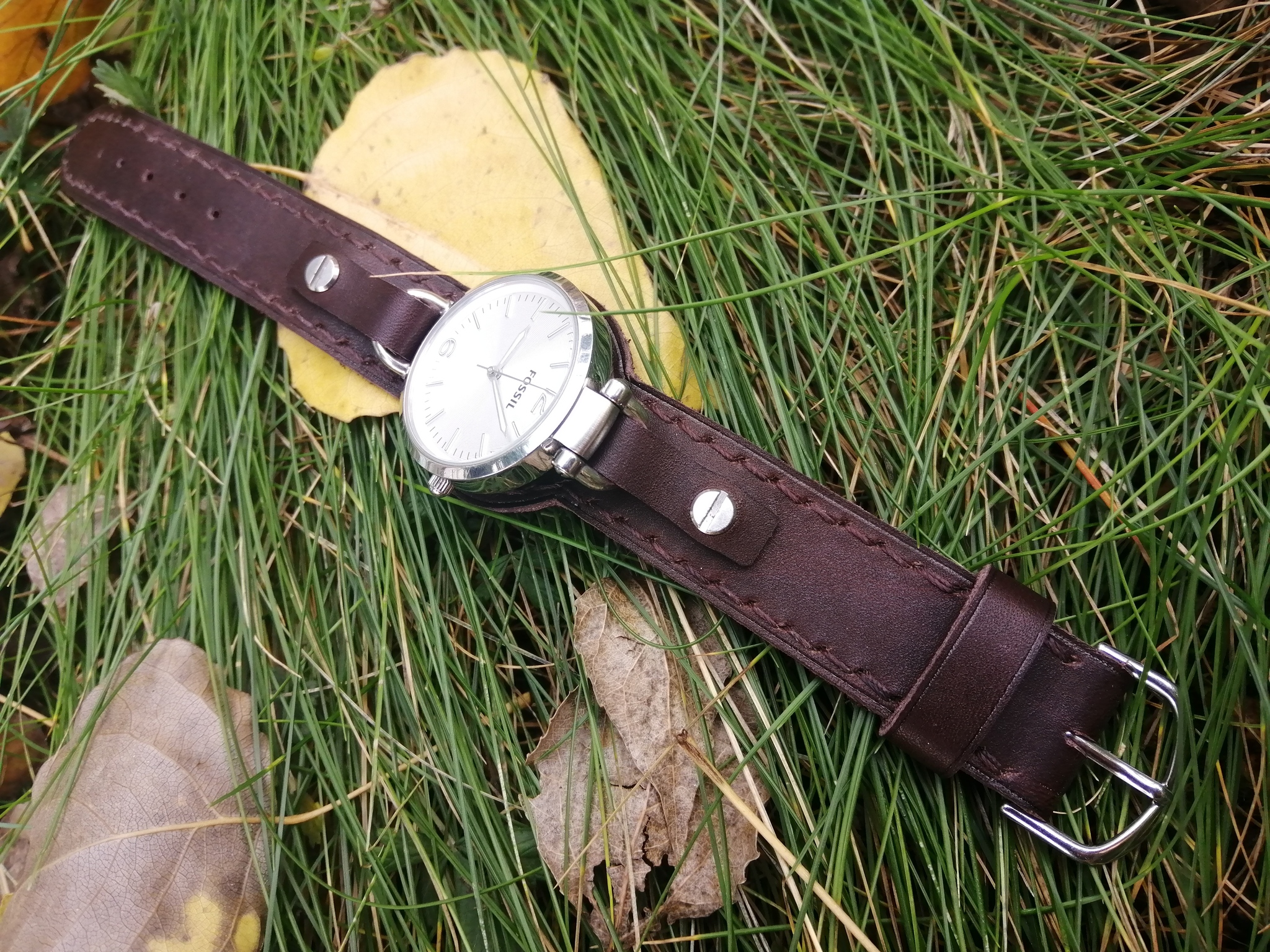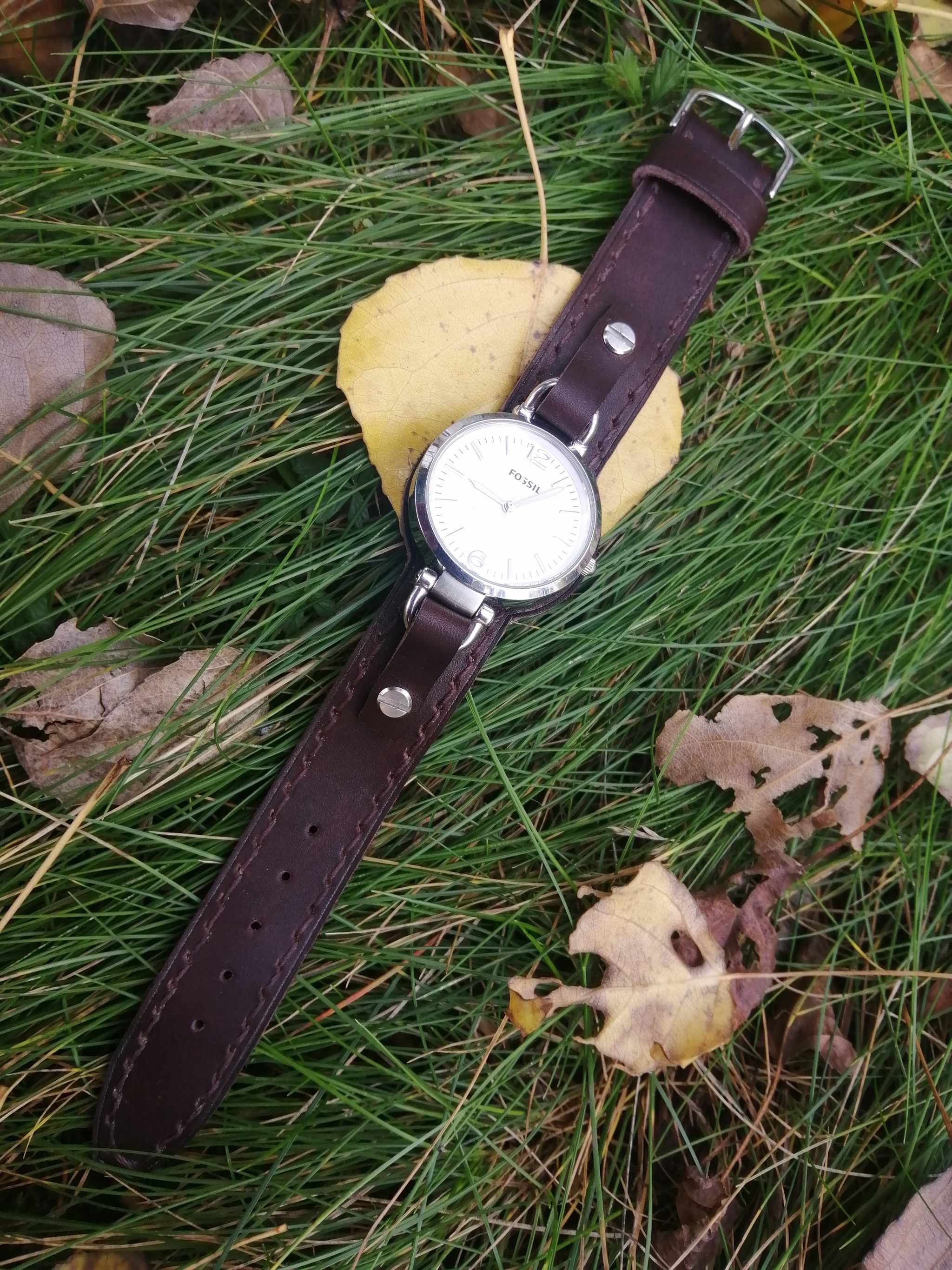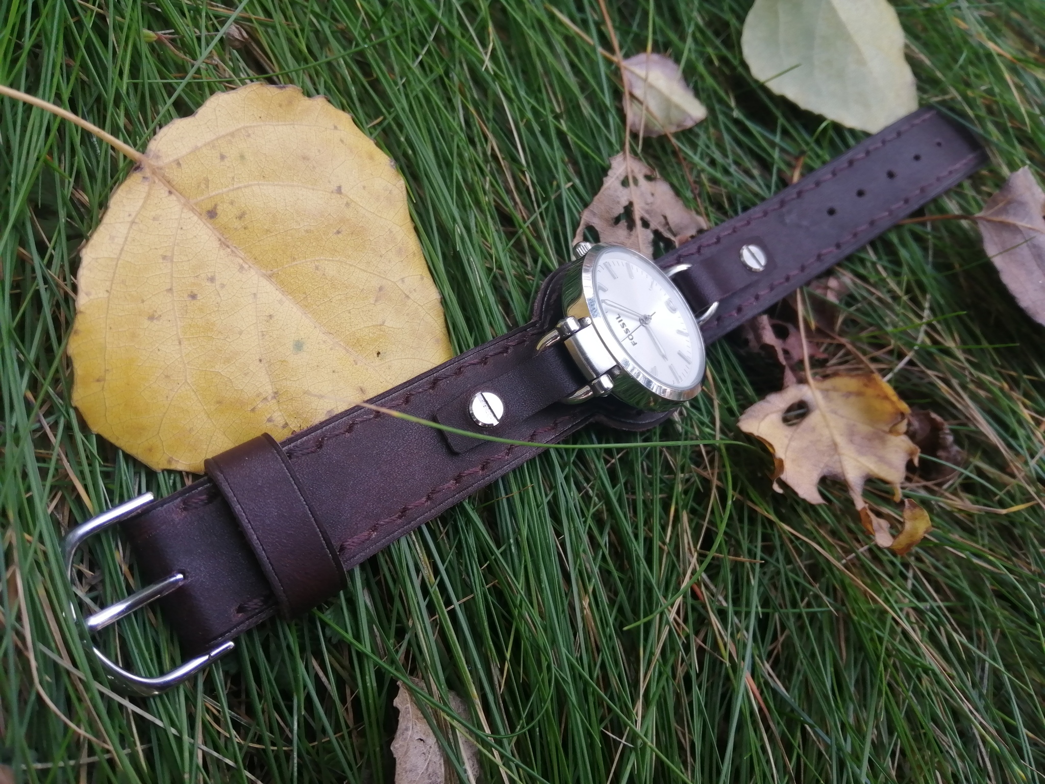 Всем привет!!! Ремешок для женских часов Fossil в не стандартном, для этой модели, исполнении. Фирменный ремешок, шириной всего 8 мм. и подложка под часами меньше, но владелица часов, пожелала, ремешок чуть более массивнее. Длина ремешка 21 см.