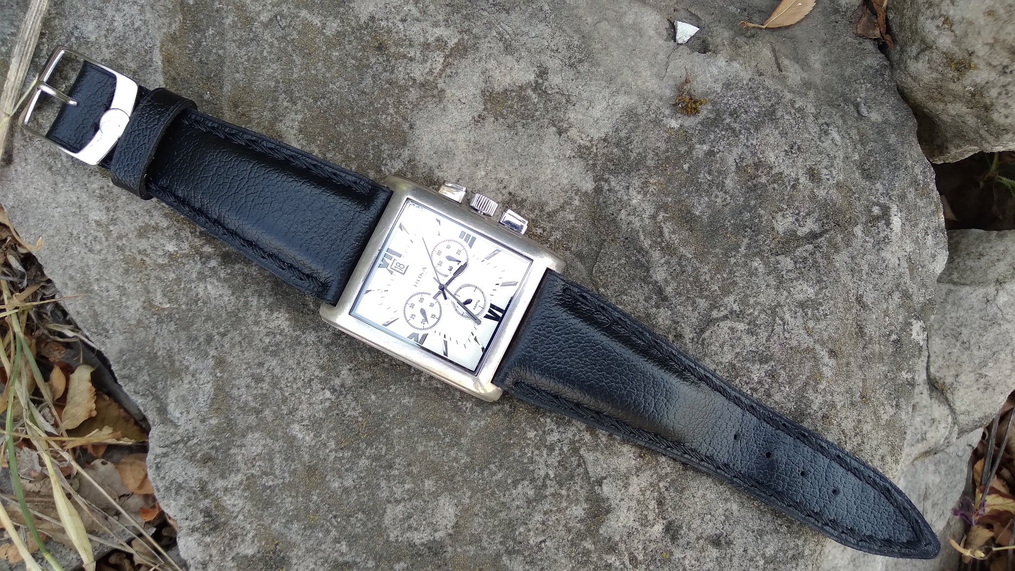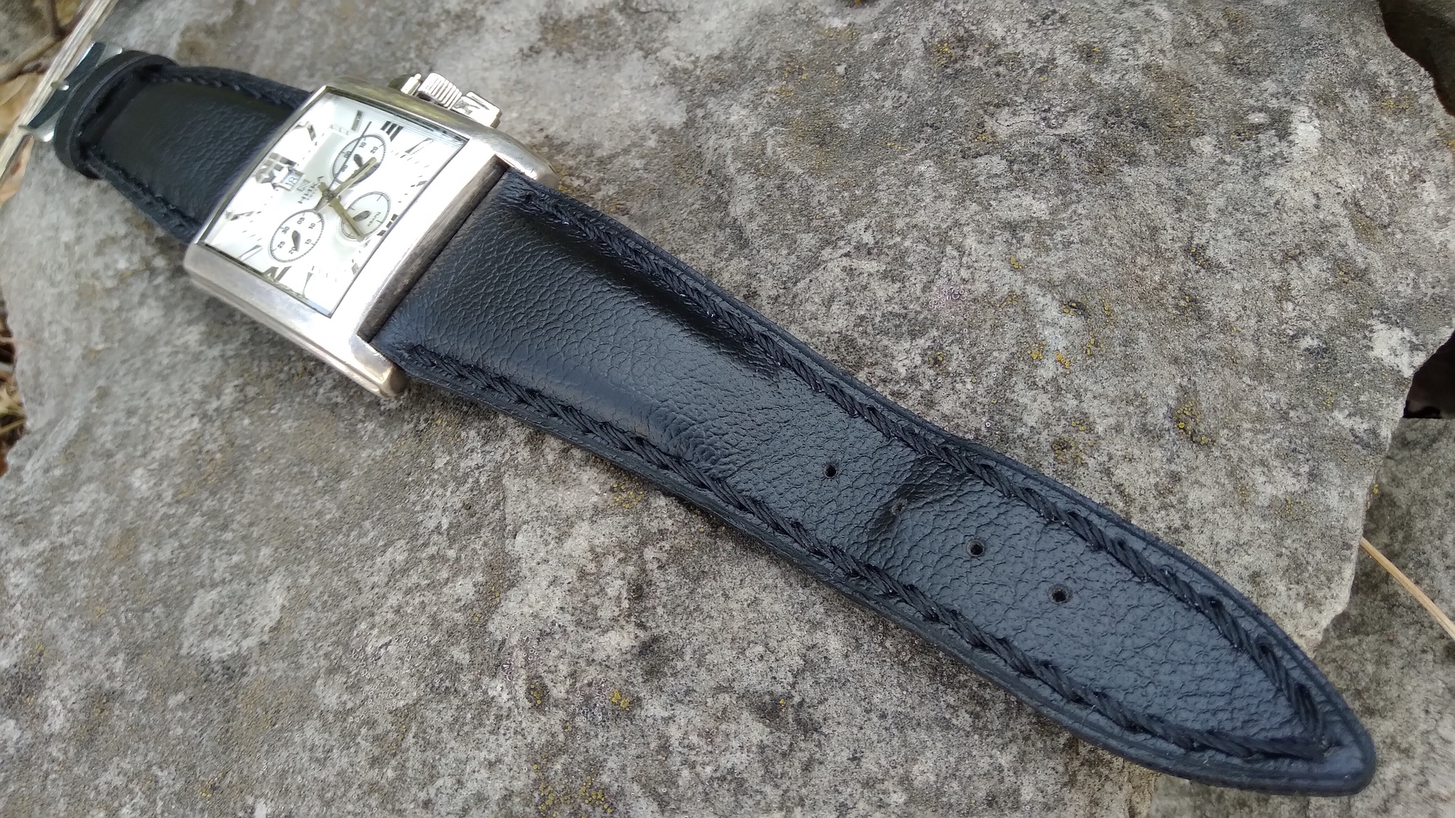 Мужские серебрянные часы носился на ремешке с пластиковой вставкой, но!!! в данной модели часов, эти встаки не очень качественные (или мне такие попадались, не знаю), смастерил ремешок без них.