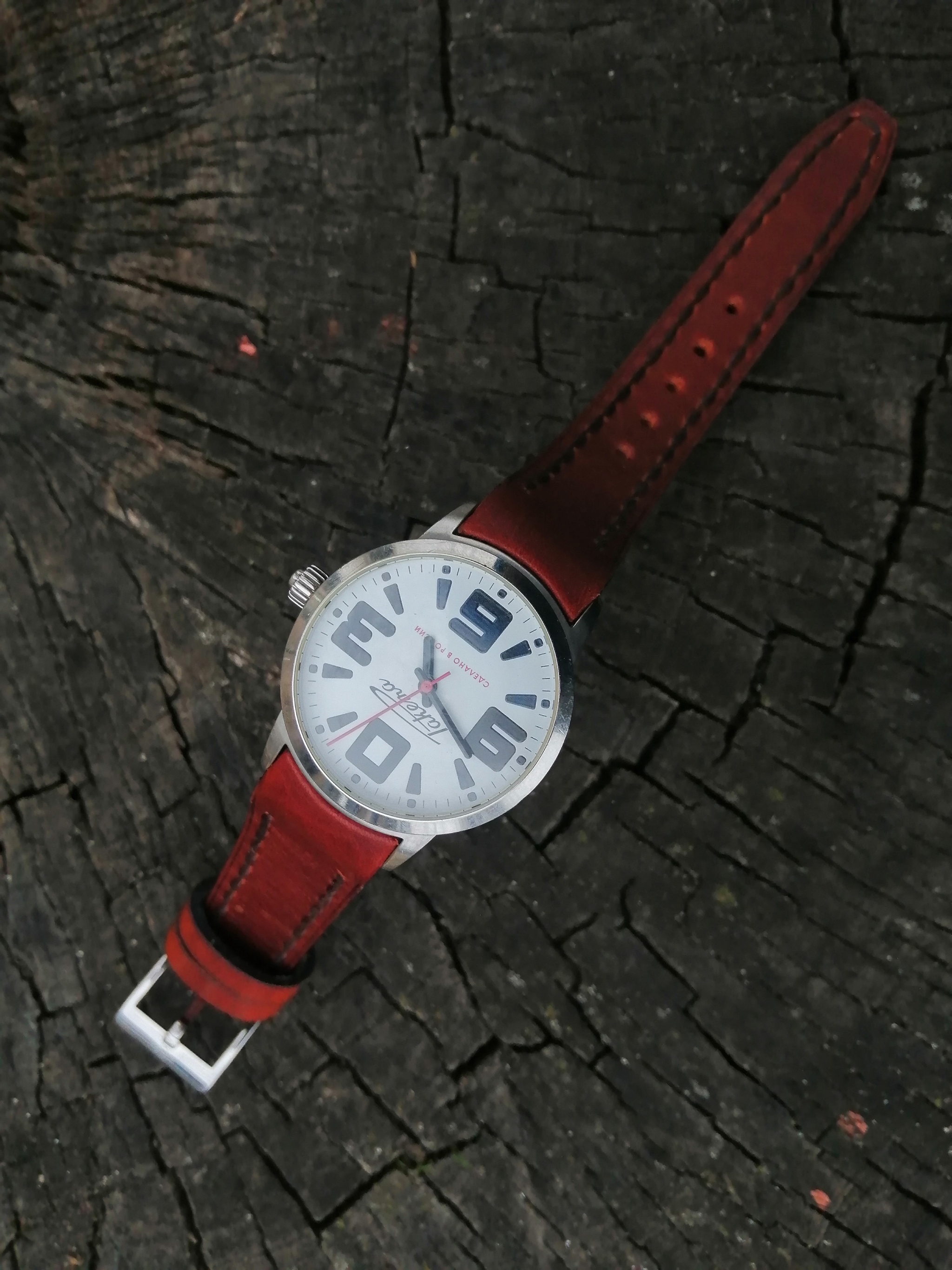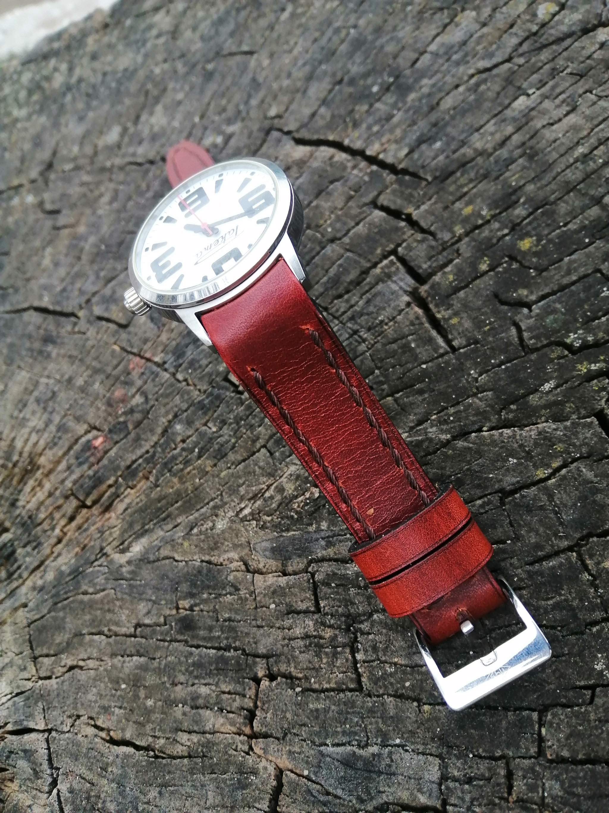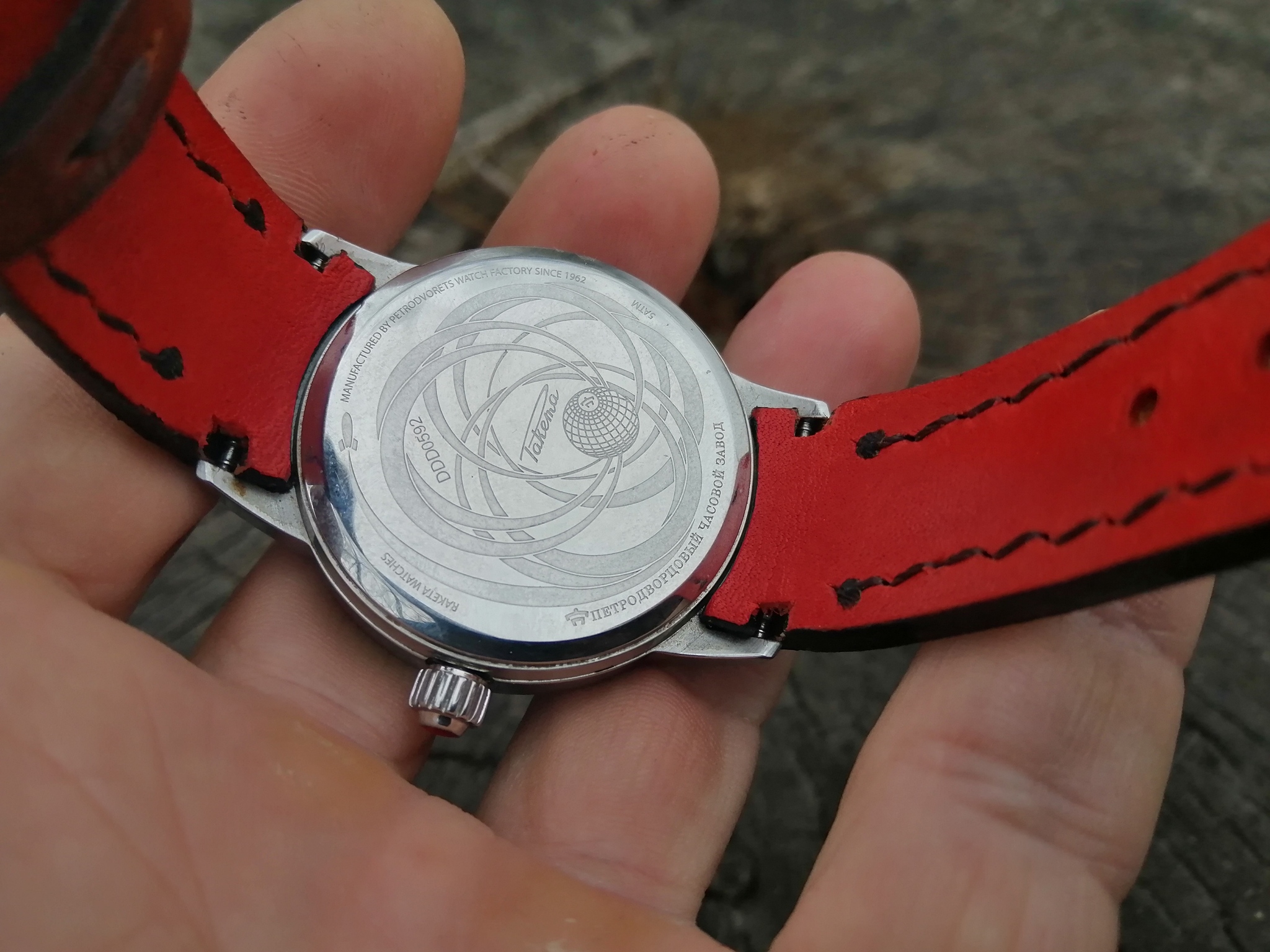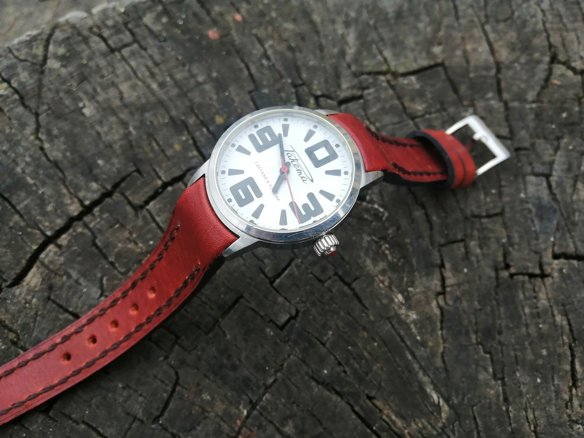 Всем привет!!! Ремешок для часов Ракета, сделаны уже в России. Ремешок с плотным прилеганием к часам, а-ля тиссот. Владелец часов попросил смастерить ремешок с красной внутренней стороной. Пряжка родная.