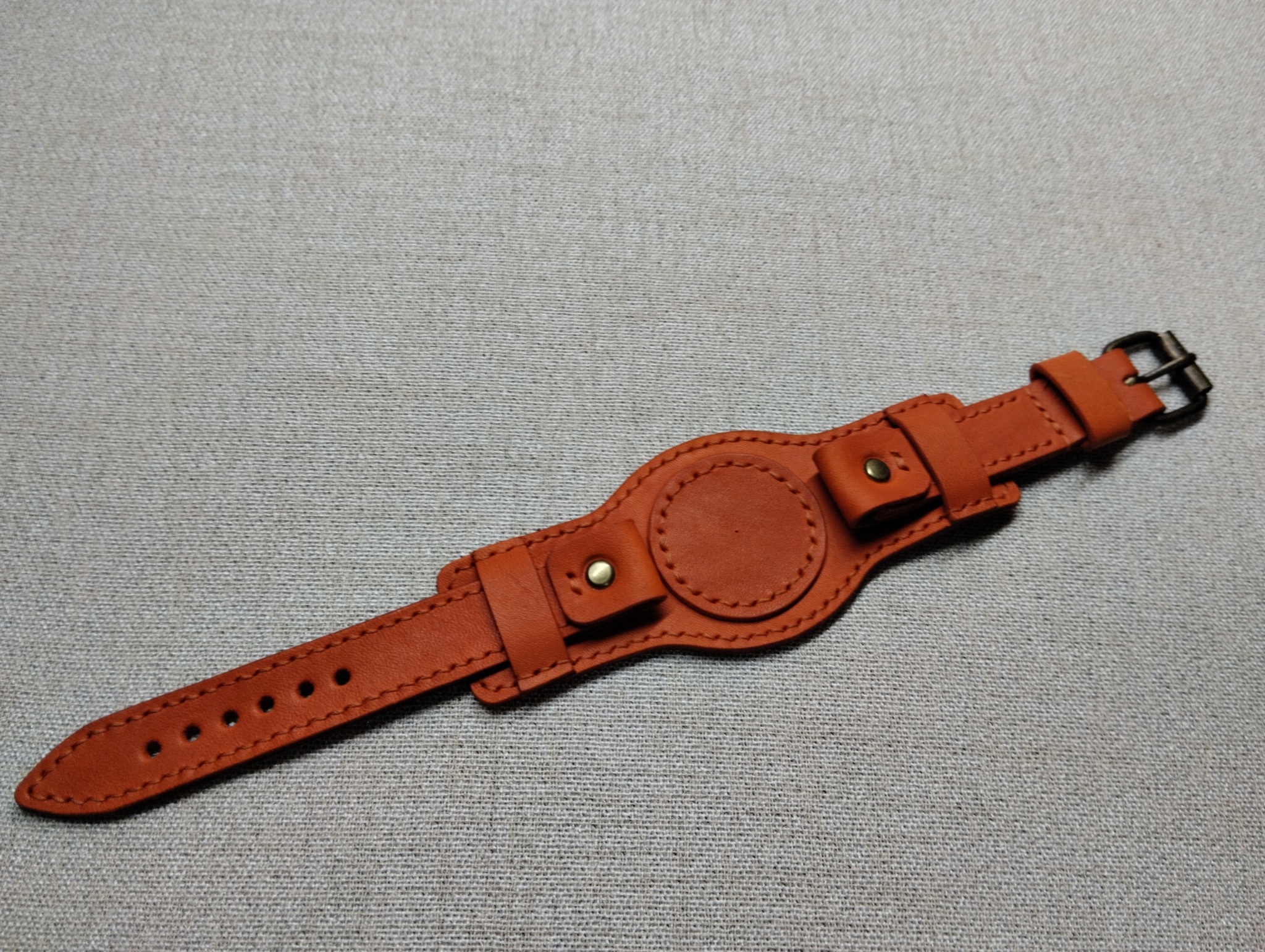 Ремешок для часов с напульсником. Рыжая кожа