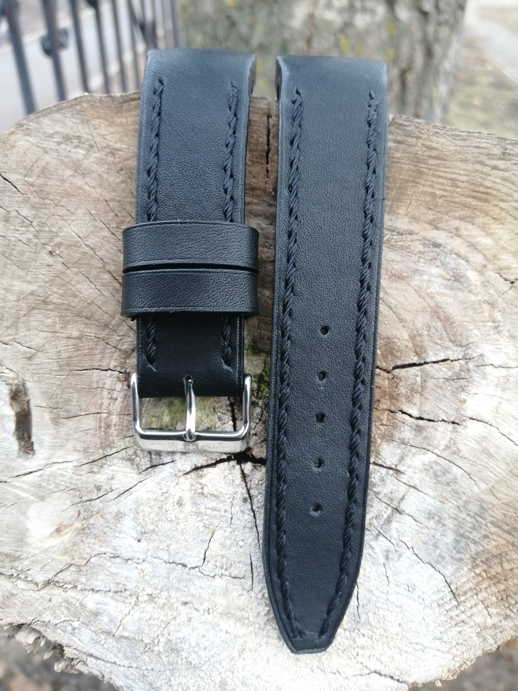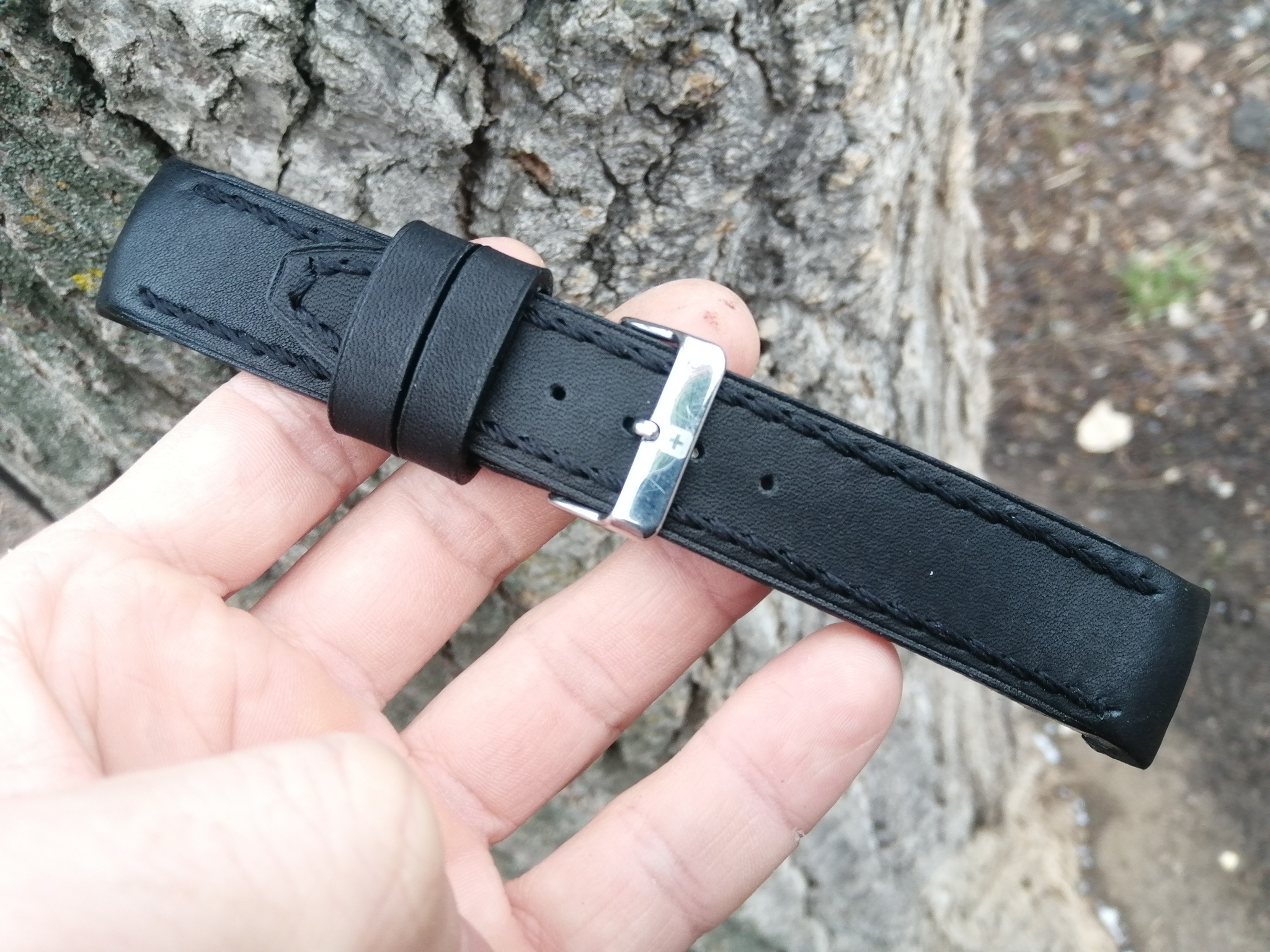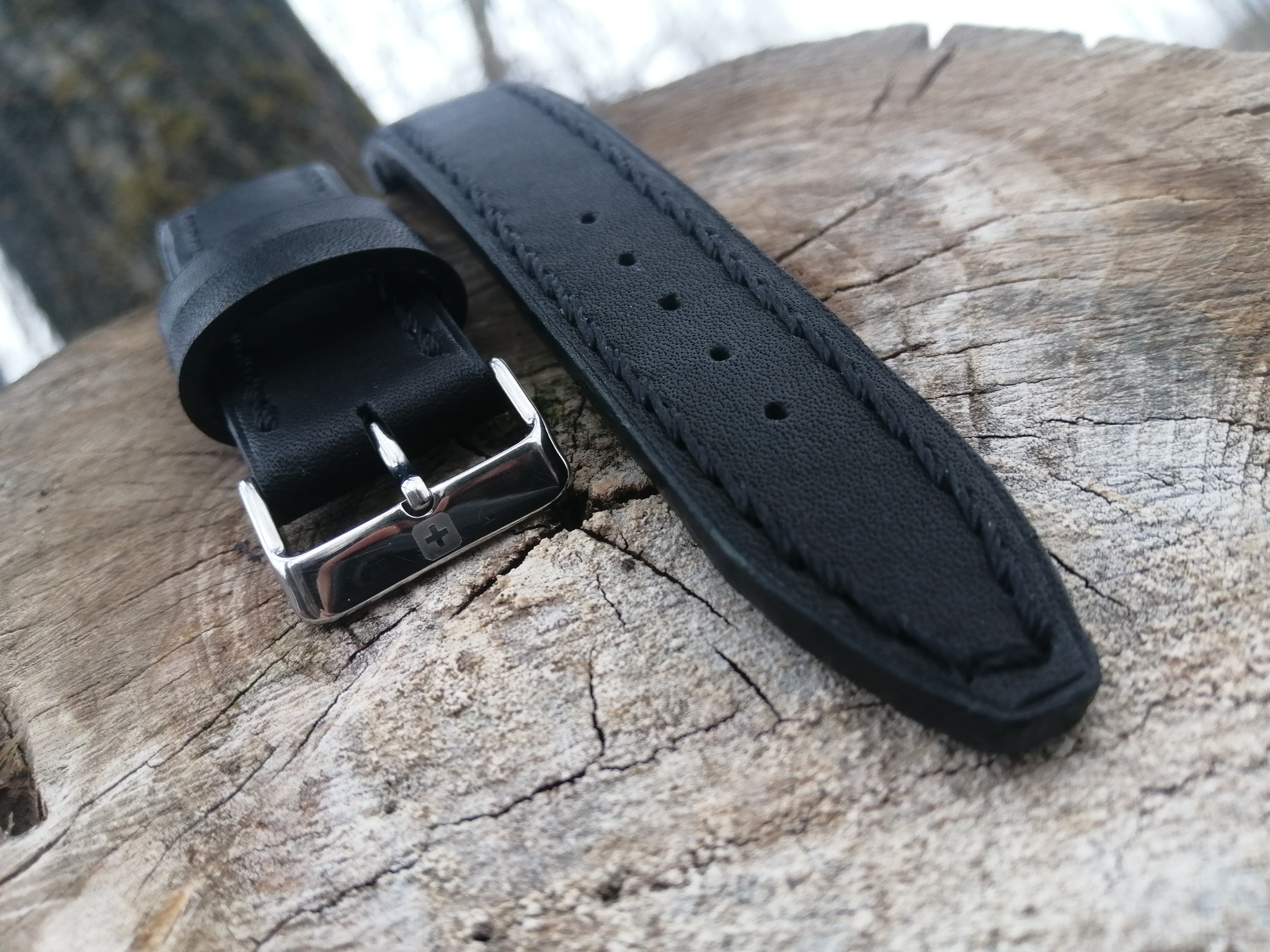 Всем привет!!! Ремешок для часов Swiss Military Hanova с пластиковой вставкой, супинатором у основания ремешка. Ремешок смастерен на заказ. Пряжка переставлена родная фирменная. Прошито в ручную. Биговка 1 мм. от края. Длина 8 см. и 12 см.