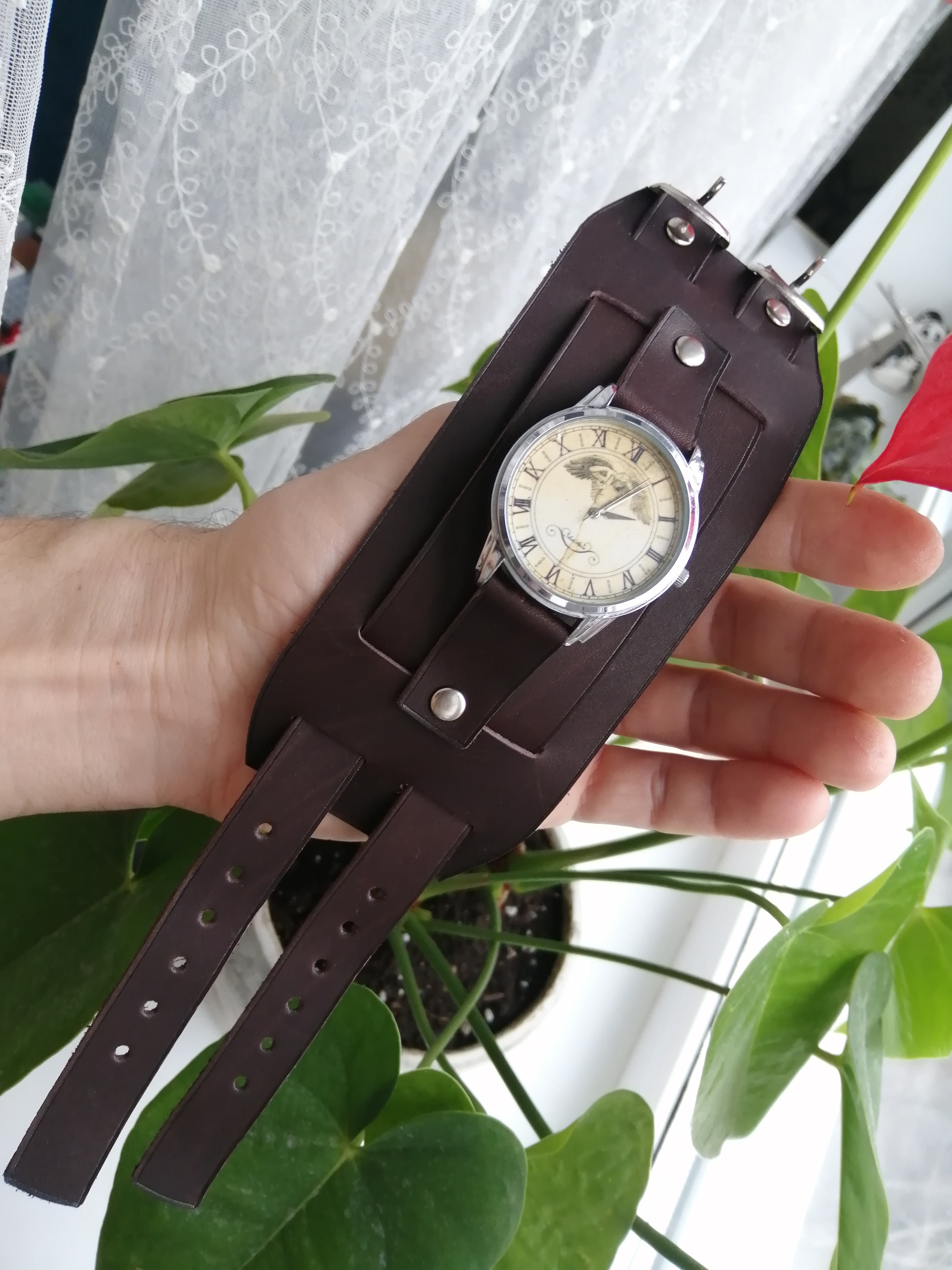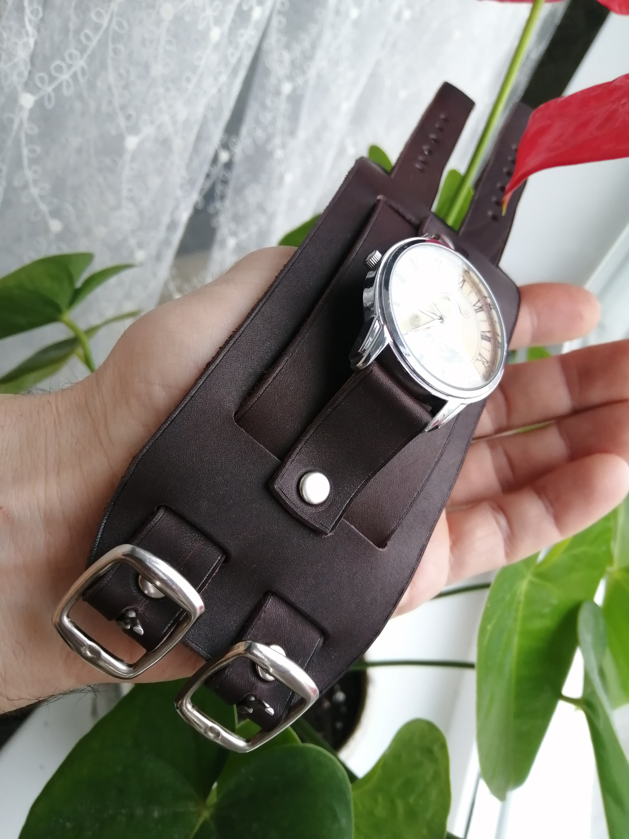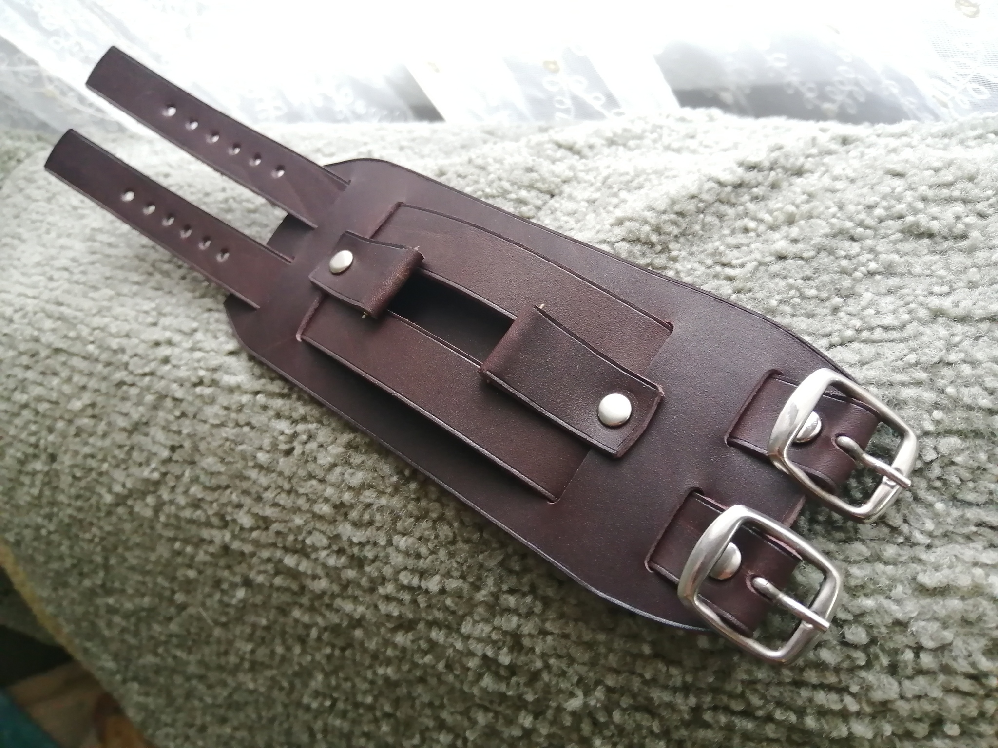 1 Remeshok68 Ремешок напульсник. Кожаный ремешок для часов 18 дней назад Всем привет!!!Ремешок напульсник для часов с двумя ремешками.Ремешок смастерен на заказ в замен старого.Ширина напульсника 7.5 см. [моё] Ремешок на часы Напульсник Ремешок Ручная работа Изделия из кожи Кожа натуральная Рукоделие с процессом Наручные часы Воронеж Длиннопост Ещё 0