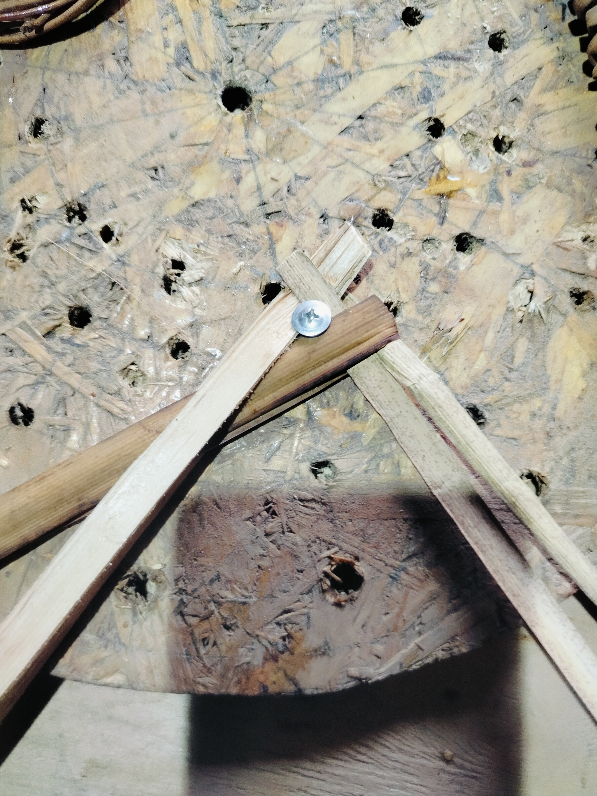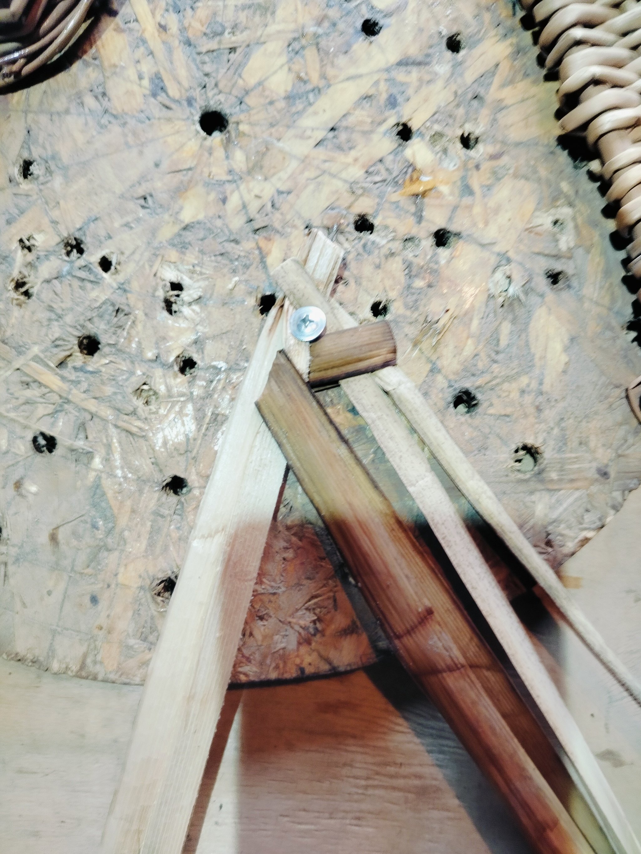 Вкручиваем саморез. Можно поставить что-то тяжёлое, либо зафиксировать другим способом.