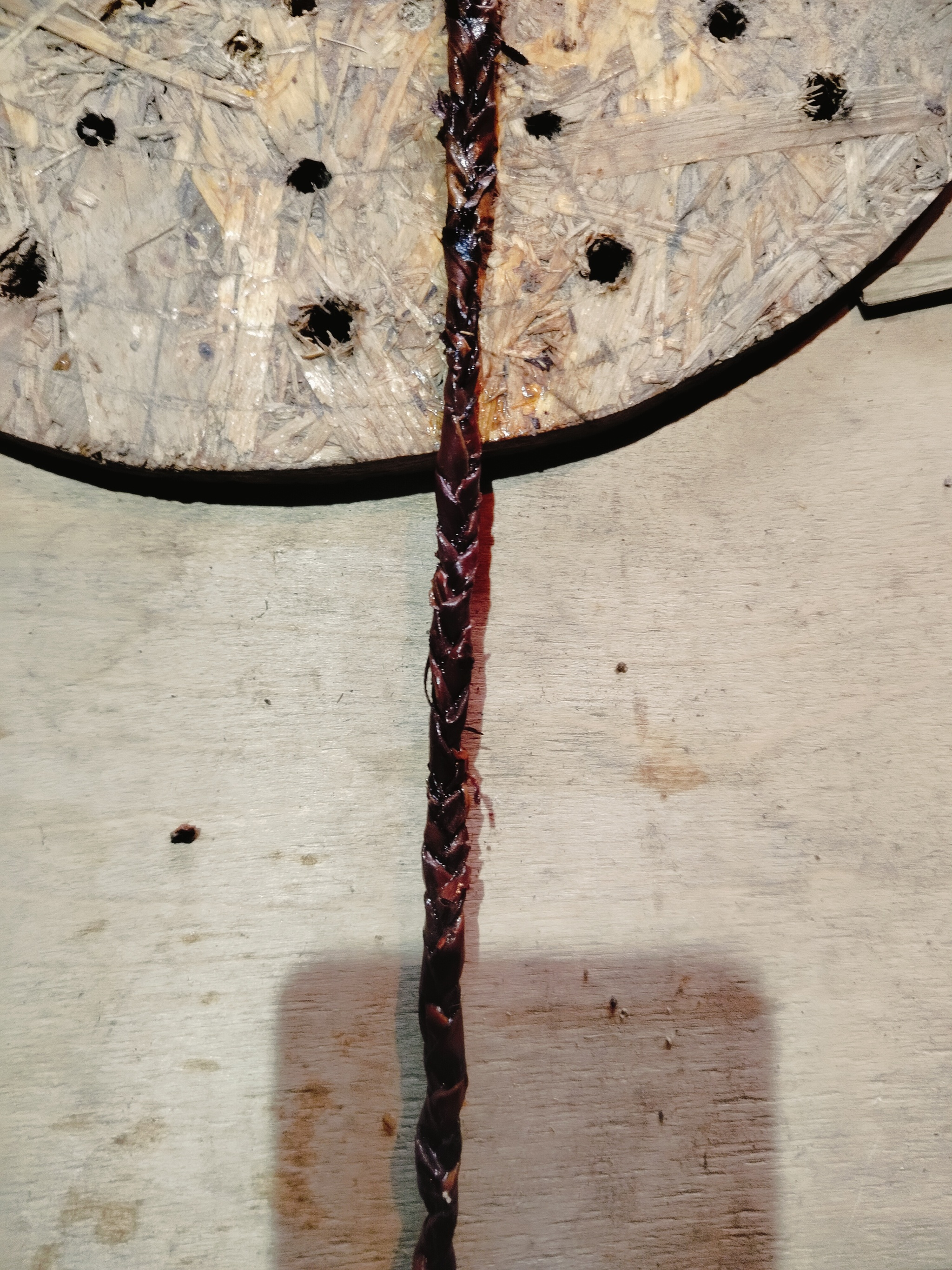 Сплёл метров 8–9 На фото зажим , косу постоянно передвигаю зажимаю, плету дальше.