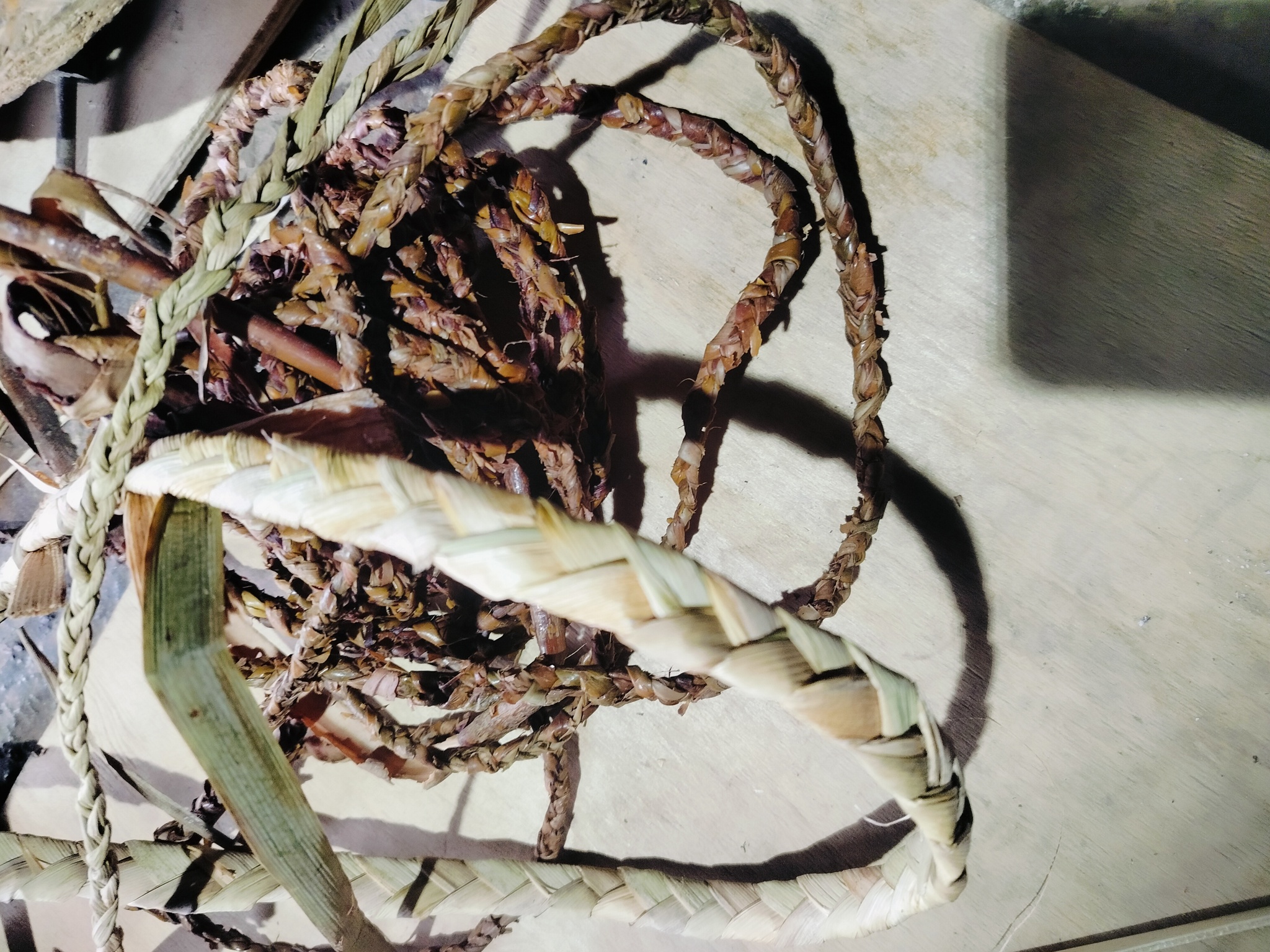 Возможно будет интересно.. В Индонезии плетут косу из 8 листов. Потом косы между собой сшивают ниткой–иголкой. Тоже самое присутствует у хантов –манси( что-то в последнее время часто их упоминаю). Единственное различие, первые плетут из водного гиацинта, а вторые использовали рогоз.