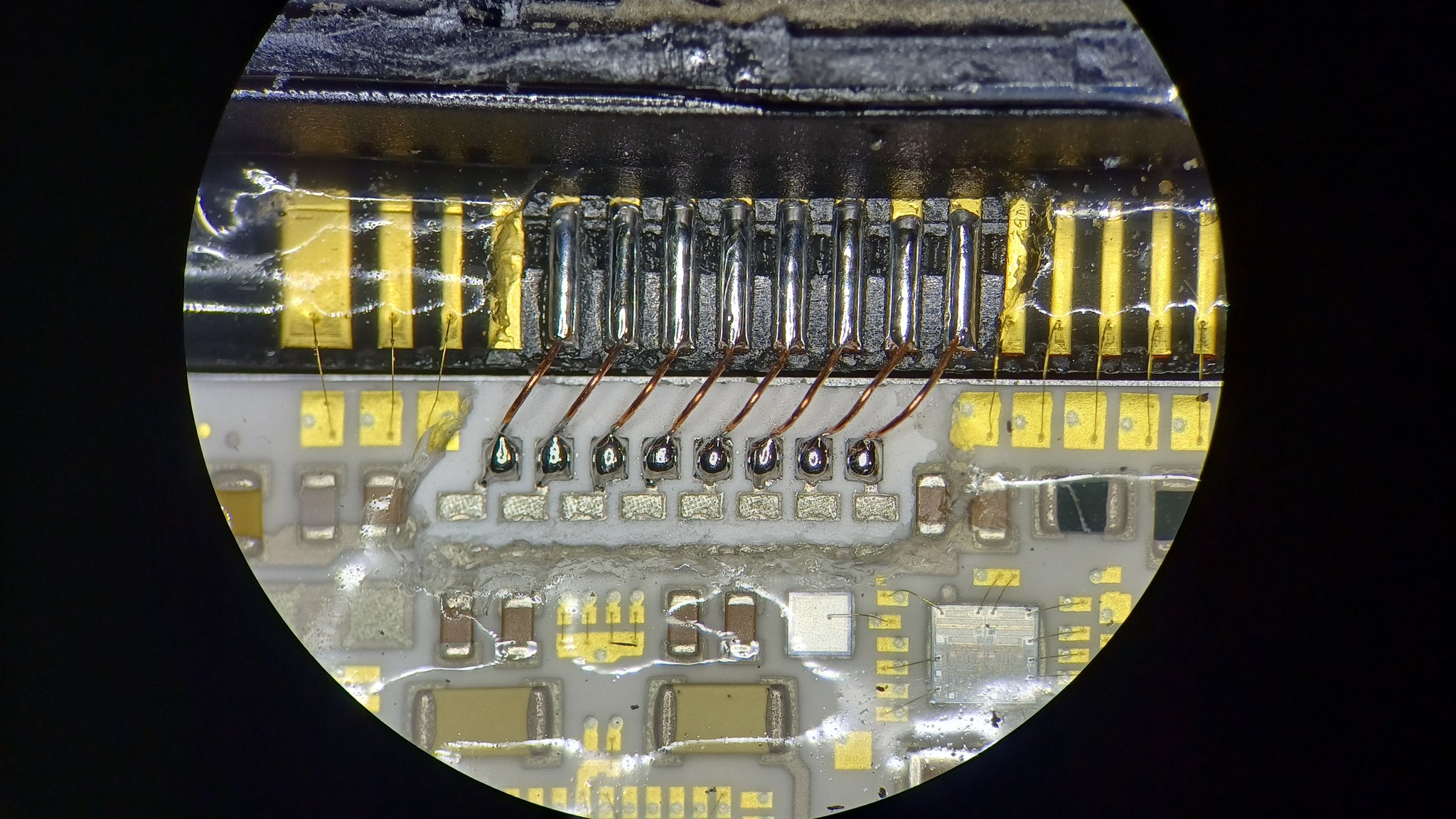 Для ремонта таких контактных групп необходим хороший микроскоп, прецизионное паяльное оборудование и огромная аккуратность.
