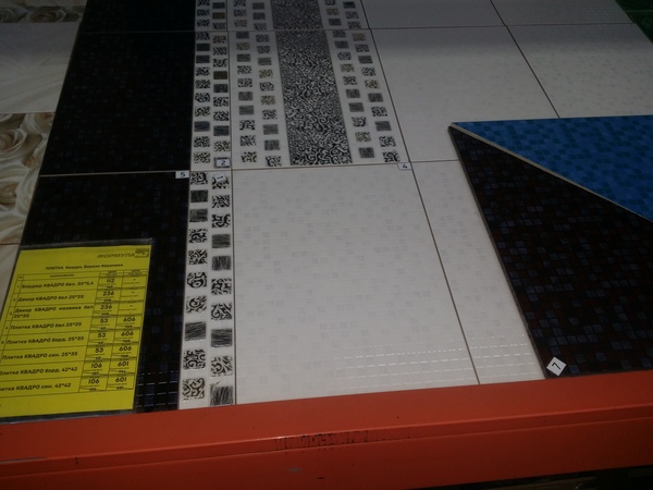 Старался брать плитку по акции, эта плитка пошла на фартук. 27 плиток по 53 рубля, 11 бордюров по 112 рублей, 6 декоров по 236 рублей. Итого 4080 рублей.