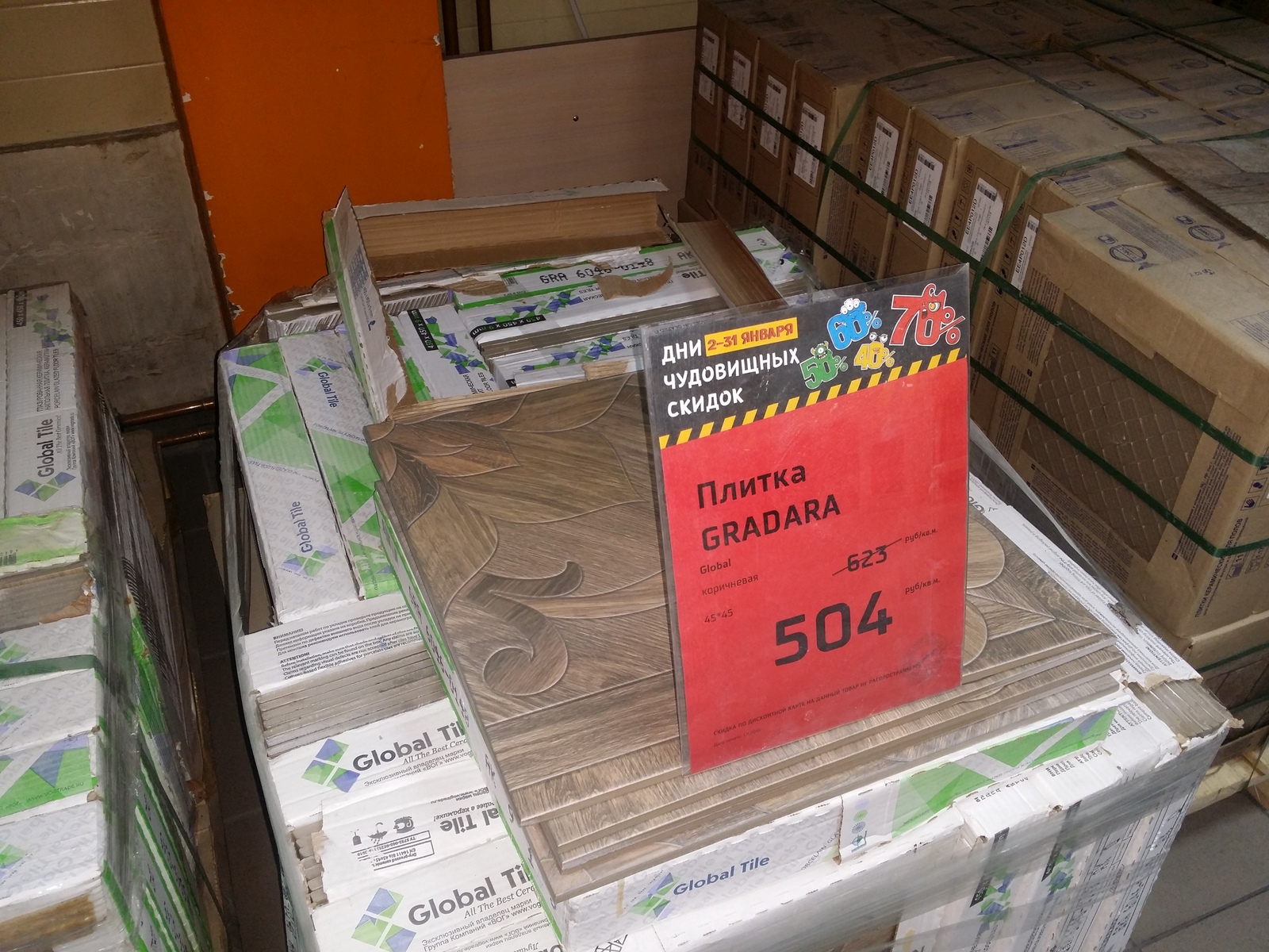 Напольная плитка на 7.6 квадратных метра кухни стоила около 4000 рублей, может чуть больше.