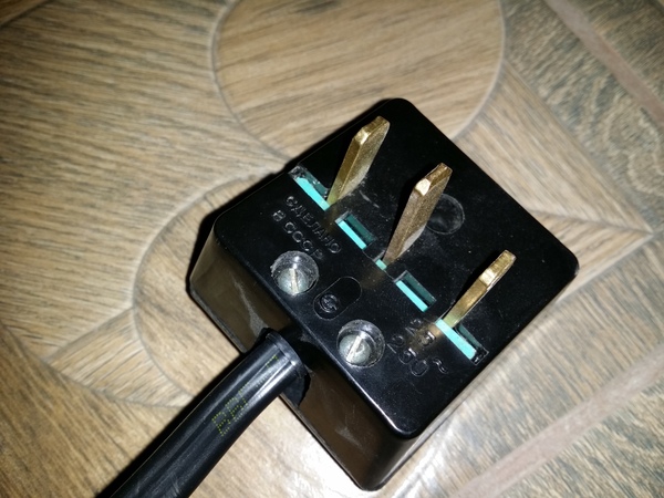 Не повторяйте моих ошибок, на этой вилке земля по центру а фаза одна из крайних. Мне кажется при должном старании при подключении в сеть можно фазу с нулем поменять местами. Это будет херово. Лучше делать нормальную евро вилку и евророзетку.