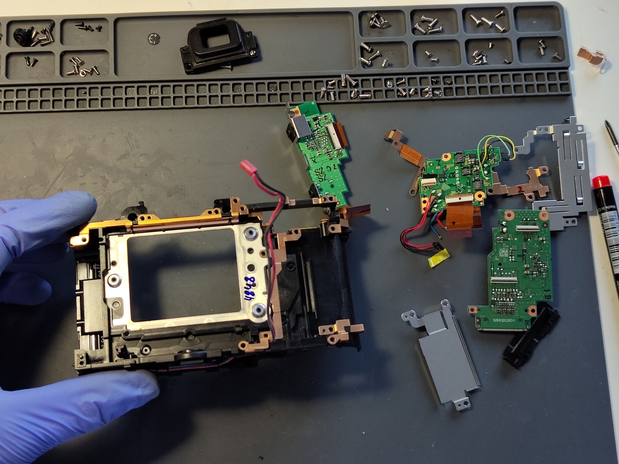 Большинство прежних Nikon сделаны с фиксированным положением матрицы на корпусе, можно смело разбирать и собирать. Но есть и такие где матрица на пружинах и нужно в начале замерить расстояние от байонета до матрицы, чтобы правильно собрать в дальнейшем.