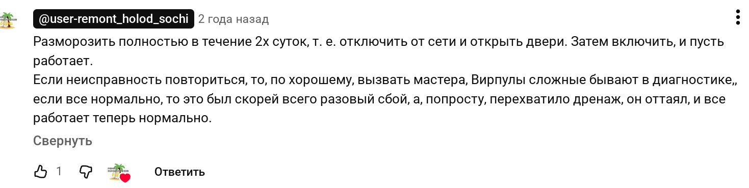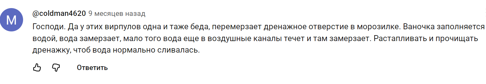 С замерзшими водостоками у этих холодосов от Вирпула походу это очень частая проблема. Вот из поиска в инете про эту же модель: