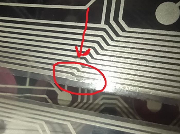 Определяем дорожку неработающих клавиш и ищем место разрыва мультиметром в режиме прозвонки.