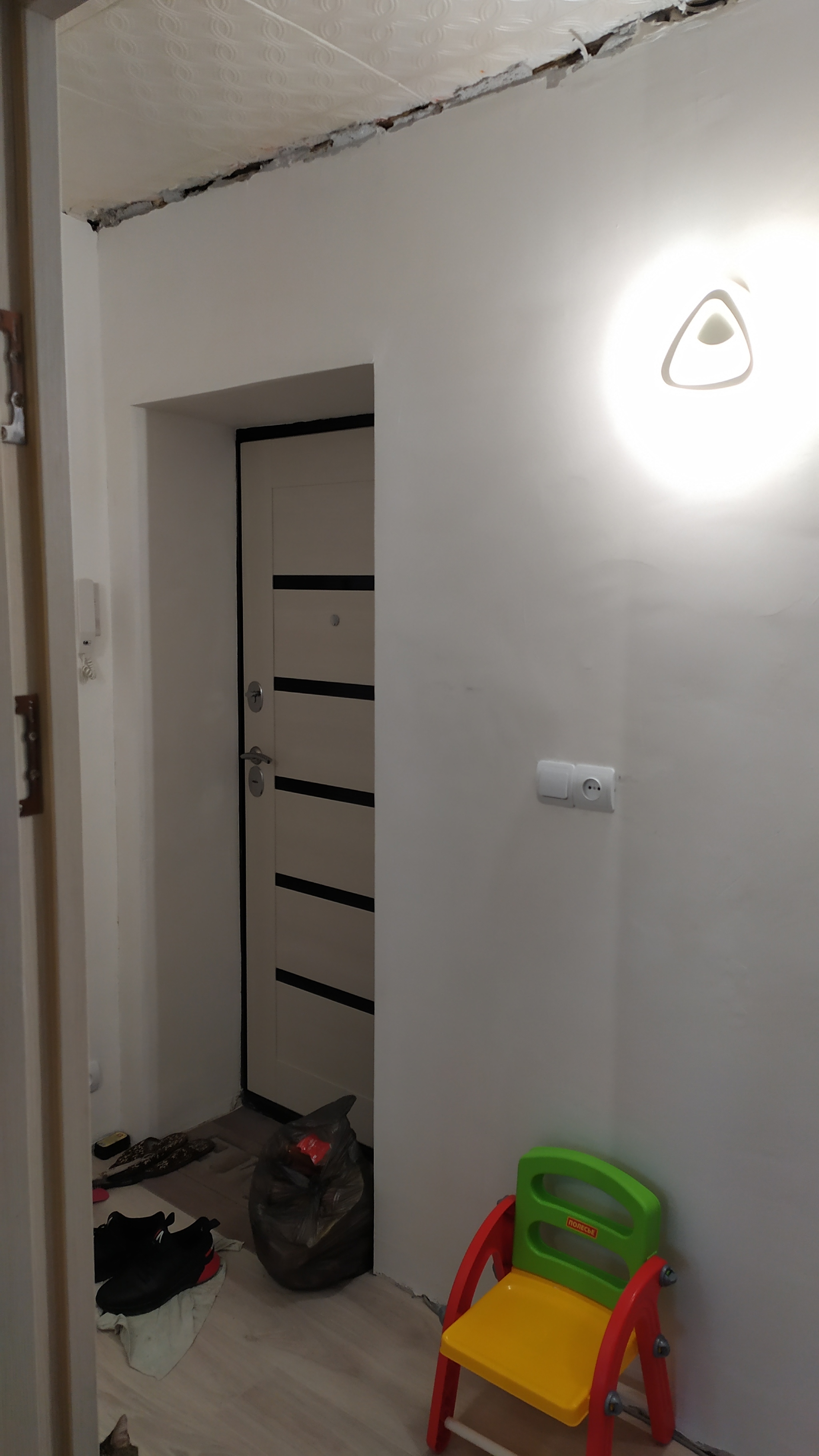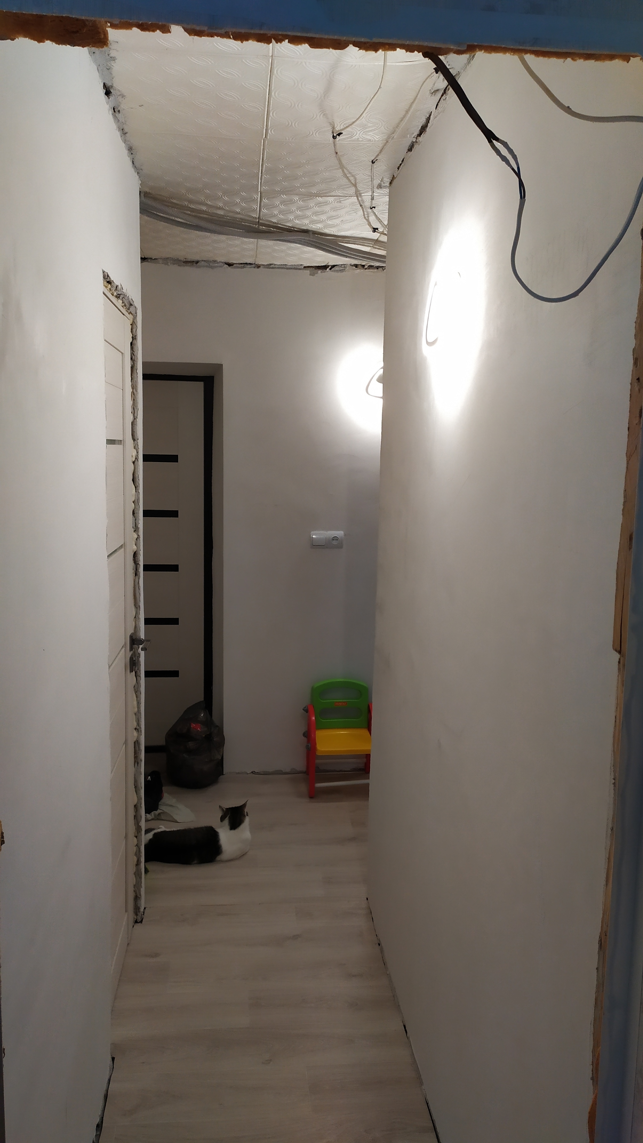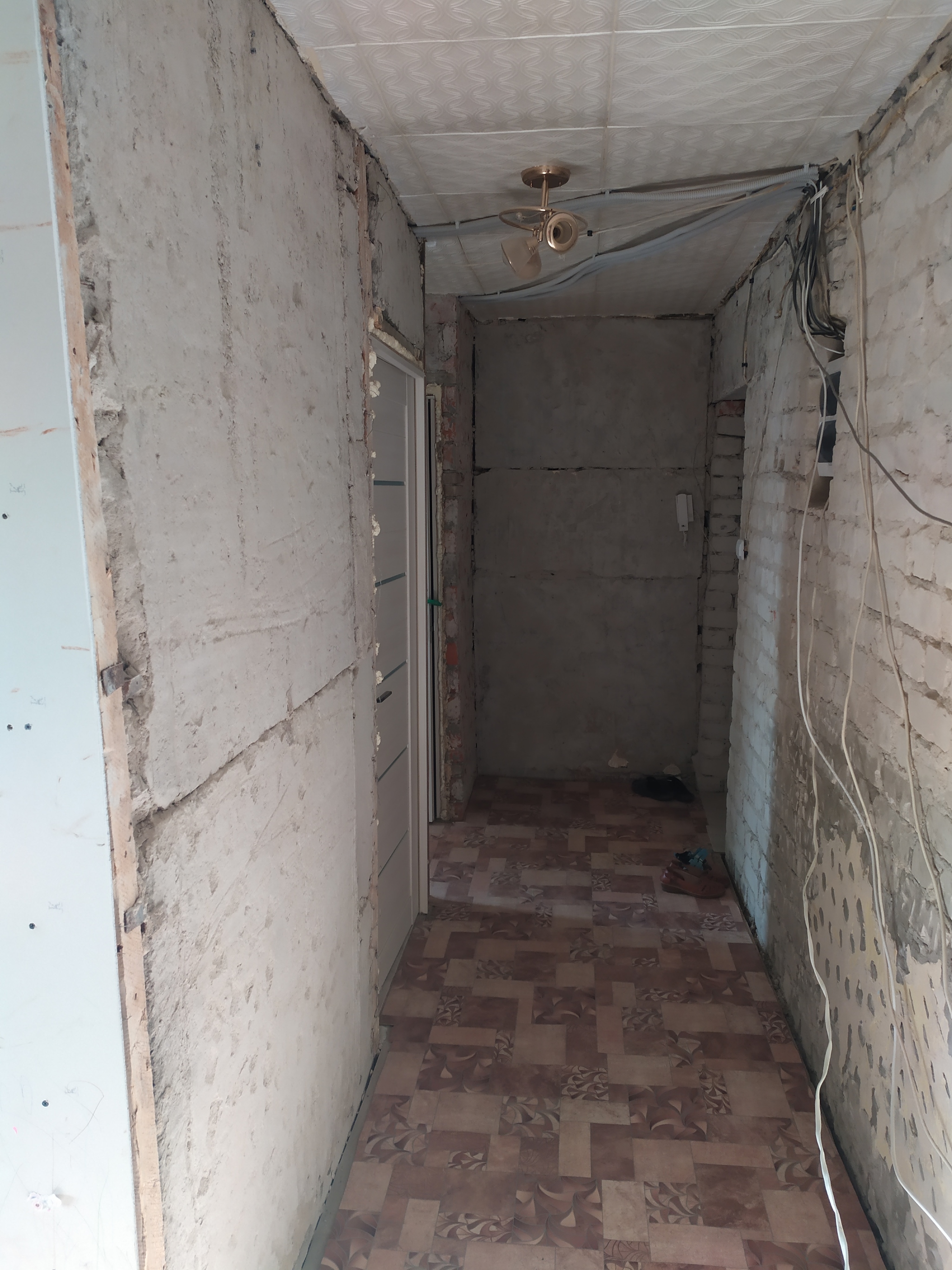 Заодно с кухней, было решено отремонтировать прилегающий коридор. В коридоре имелся шкаф от застройщика.