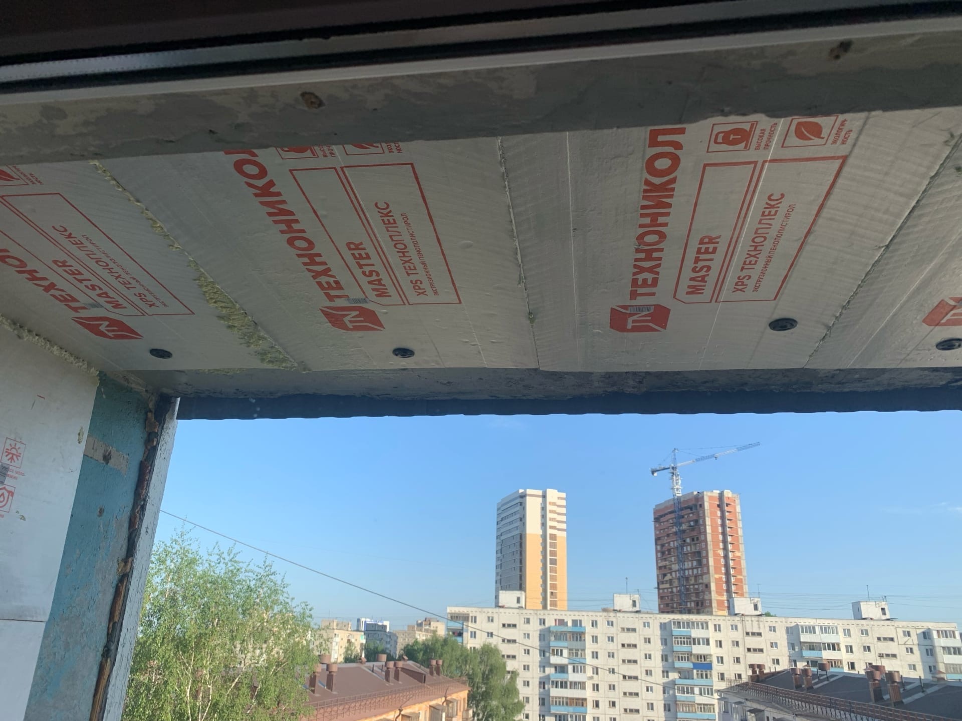 Далее пошли стены. Со стороны комнаты 30мм, со стороны соседней лоджии 50мм и также на потолок 50мм. В последствии утеплитель был заменен на технониколь т.к. пеноплэкса не было в Леруа Мерлен, а ехать за ним через пол города вообще не хотелось. Да и материал по сути тот же.