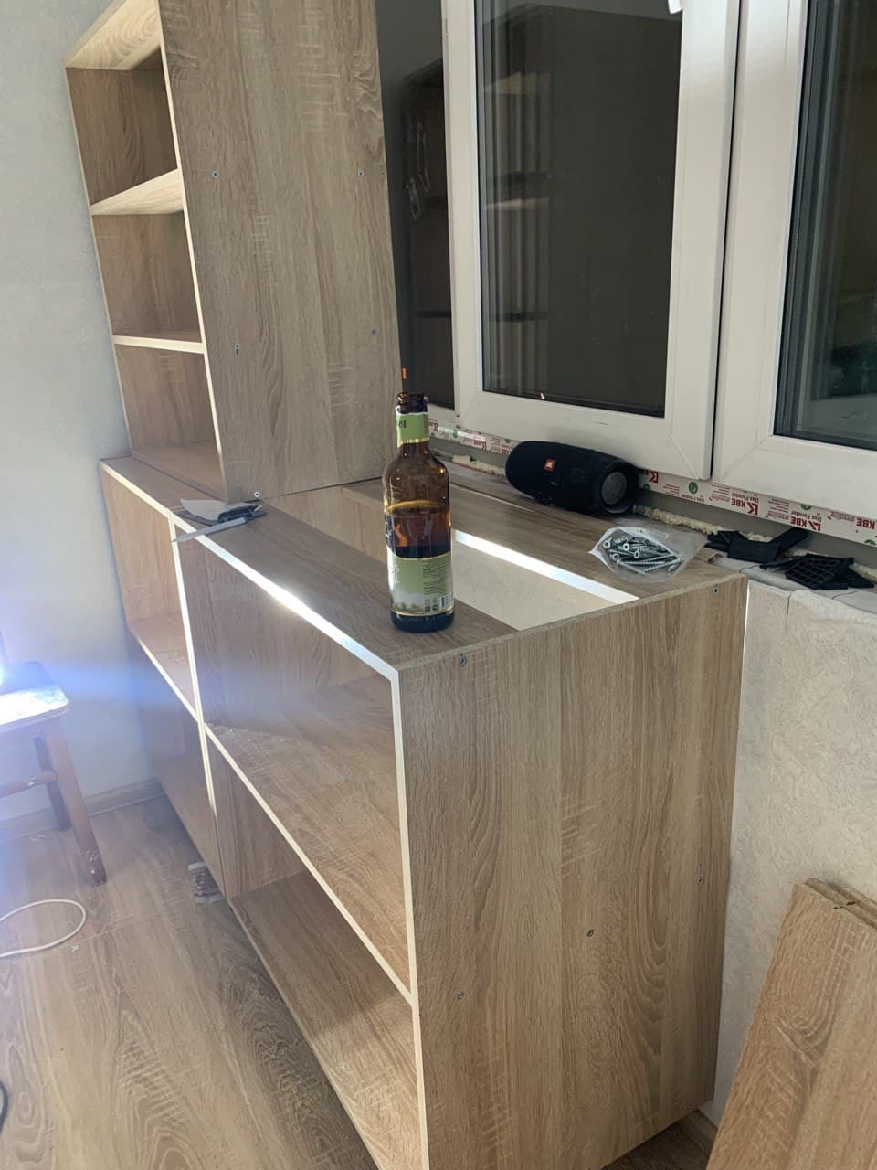 Далее пошел процесс создания мебели. Проект в голове был давно и оставалось только реализовать его в жизни. Позвонил мебельщикам - 40 тысяч. посмотрел готовые варианты в леруа и икеа - 36 и 70 тысяч соответственно. за 4 шкафа и столешницу как-то дороговато для меня. Но тут вспомнил что на день рождения мне мои любимые братья подарили ручную циркулярку, не раз встречающуюся тут на фото). И не так давно я выбросил свой китайский лобзик и прикупил Dewalt 249. Плюс я десятки раз собирал мебель и даже пересобирал ее на своей кухне (переделывал под нормальные размеры). Почему нет? Надо создавать самому. Нарисовал чертеж каждого ящика. Купил листы ЛДСП, фурнитуру, ДВП и так далее и приступил к процессу. На сие творение ушло часов 12-14. Я настолько офигел над тем что даже не накосячил нигде. Спасибо пивку за это