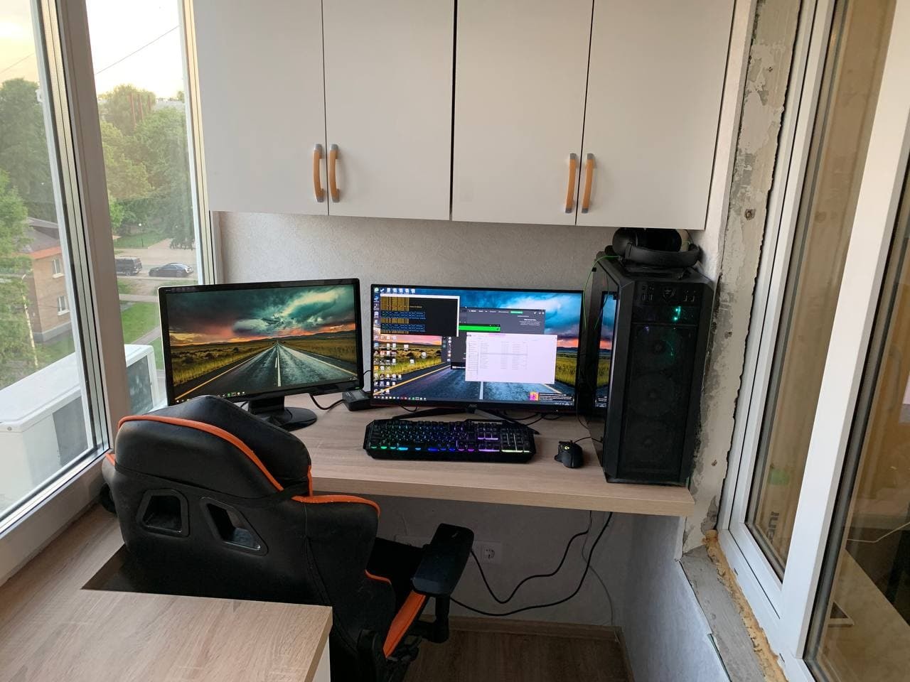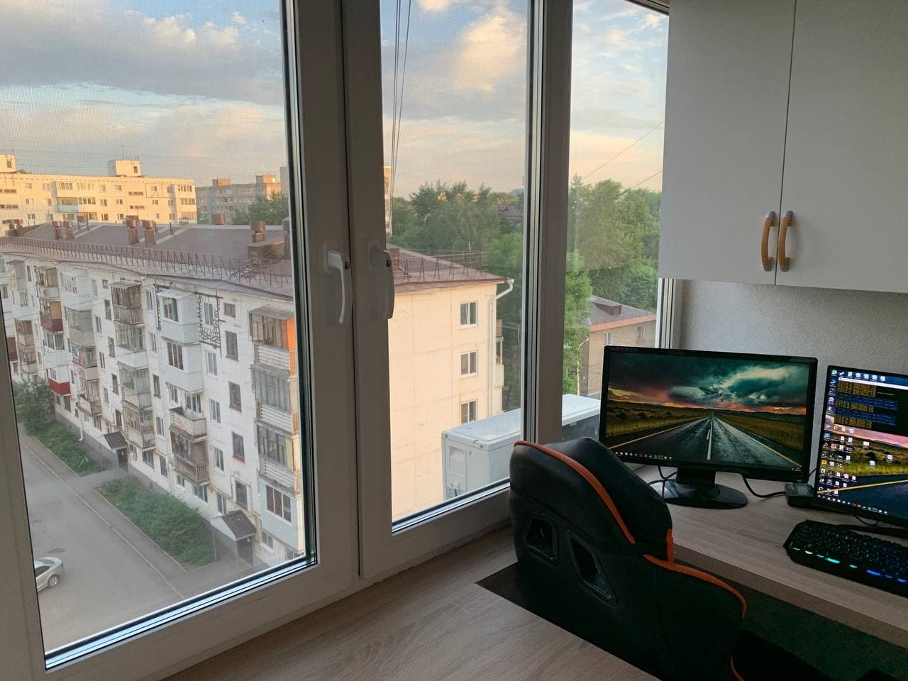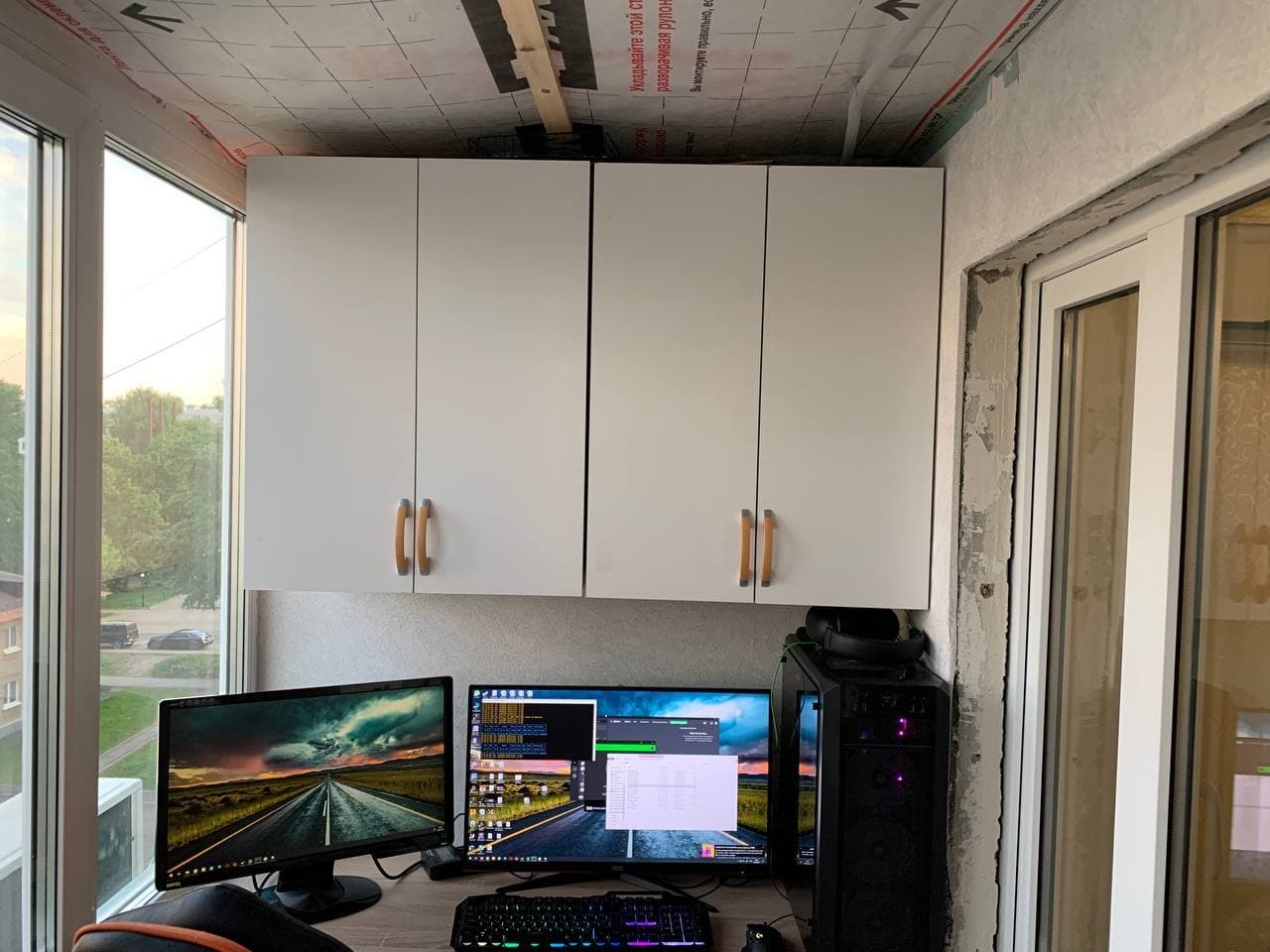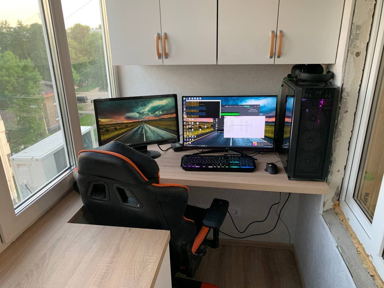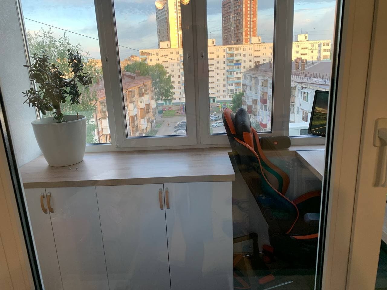 Ну и вот итог. На фото мой личный маленький кабинет. Балконный блок был оставлен по причине что в комнате спит супруга и я могу спокойно сидеть без наушников прослушивая музыку и смотря фильмы.