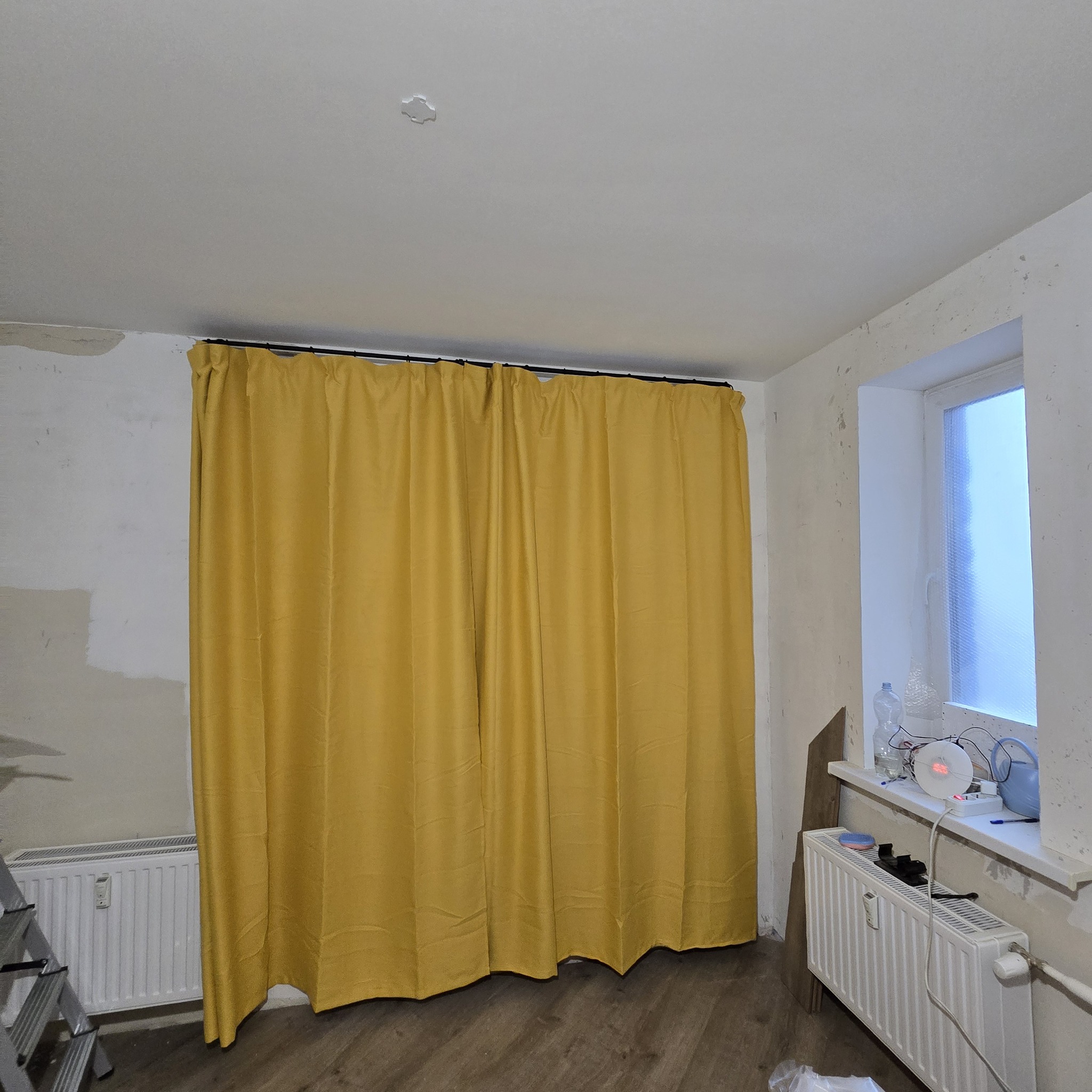 Карниз 2800, шторы 1600. Итого: 4400₽ на одно окно. На второе тоже такие же закажу. Цвет красивый, бодрый.