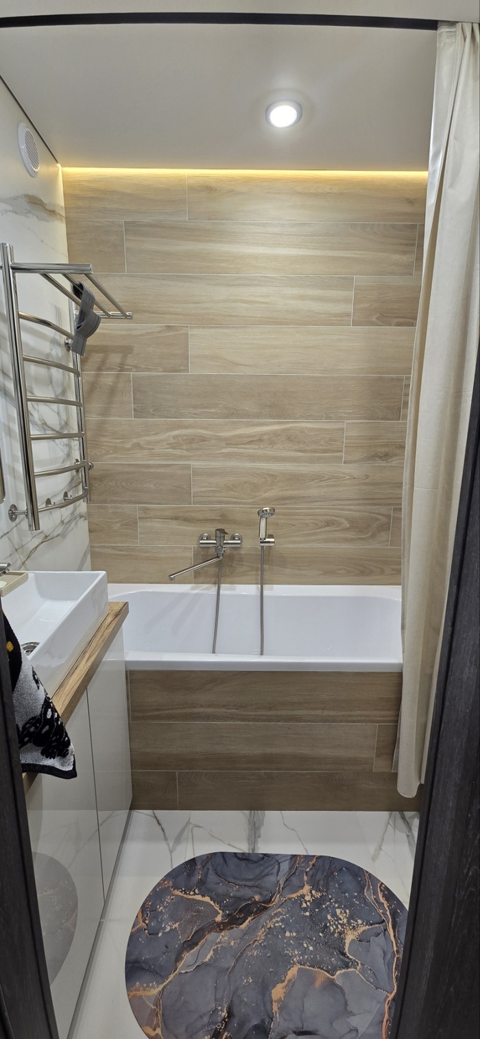 Так как строитель из меня не фонтан, были найдены пара строителей с прямыми руками, и понеслось. От первоначального плана не осталось и следа сразу же после начала демонтажа в ванной комнате.