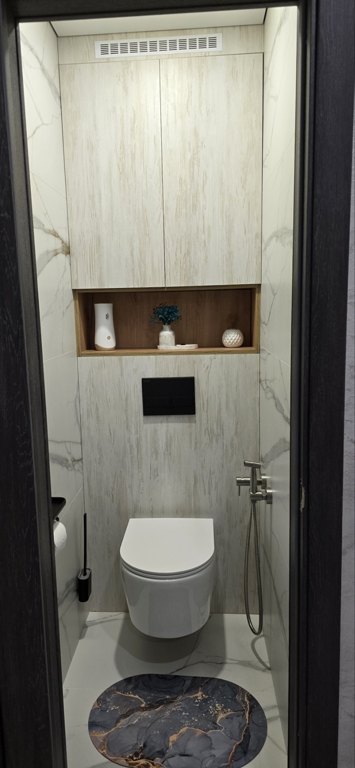 Заранее были куплены плитка и унитаз с инсталяцией.