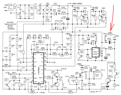 Его номинал было тяжело нагуглить, но оказалось, что он около 6 вольт. И чем меньше номинал, тем выше будут обороты вентилятора "по умолчанию", при холодном радиаторе. Хитрая схема подает на вентилятор 12 вольт минус номинал данного стабилитрона плюс компенсация от схемы управления оборотами в зависимости от температуры. У меня в коллекции нашелся ближайший стабилитрон на 5 с чем-то вольт. После замены вентилятор закрутился как полагается, а блок заработал полностью.