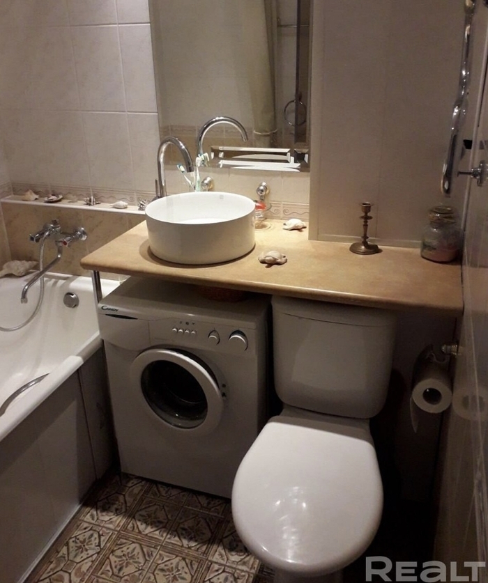 Сама жила 4 года в 1ком хрущевке, стиралку всунула на кухню. Да, тоже не камильфо, но получше чем такой Варик когда все всунуть в ванную