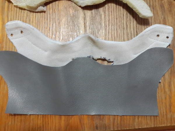 Я подклеил тонкий поролон к кожзаму, но это не принципиально, можно и без него. Я еще и прошил нитками по бокам, т.к они будут не прикрыты.
