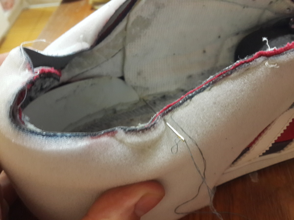 Вот как было и как стало. На один кроссовок ушел целый вечер и стертые от иголки пальцы.
