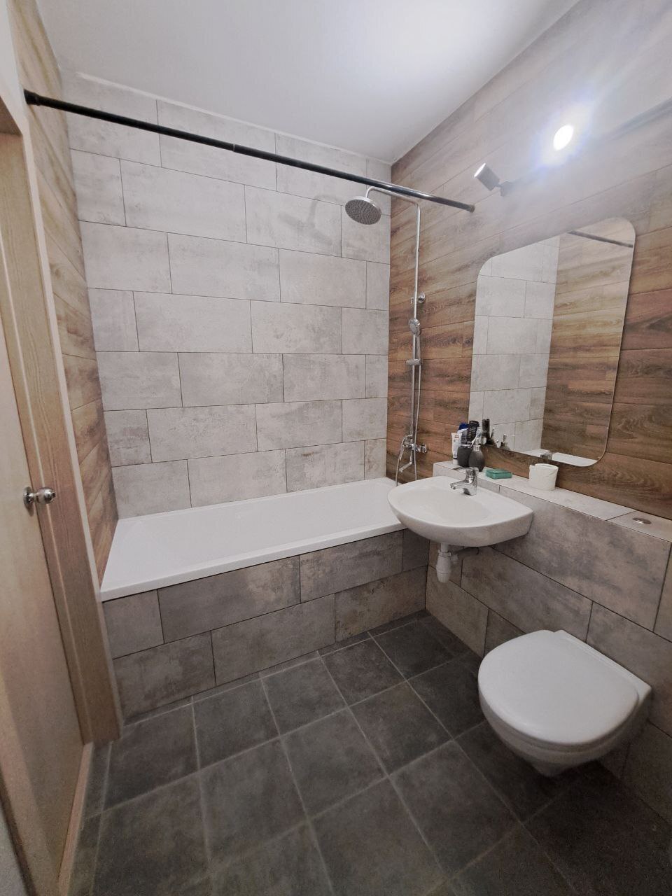 Приходил конечно не вовремя, пару дней пропустил, но доделал нам ванную. К слову предыдущим мастерам мы не дали расшить туалет, и этот новый мастер просто развел затирку чуть пожиже и перетер все поверх новым цветом). Ничего не отвалилось, все держится и казалось, что этого вообще можно было не делать. Так что не знаю зачем расшивали ванную, может потому что тупые, а может - хотели заработать на доп работах.