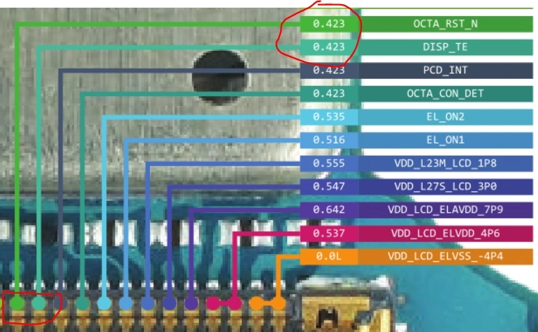 Покрутив плату под микроскопом, всё-таки понял в чем дело, небольшой изгиб нижней контактной площадки коннектора и как следствие отсутствие передачи нижних сигналов на шлейф (сори, не сфоткал, это очень слабо было видно)