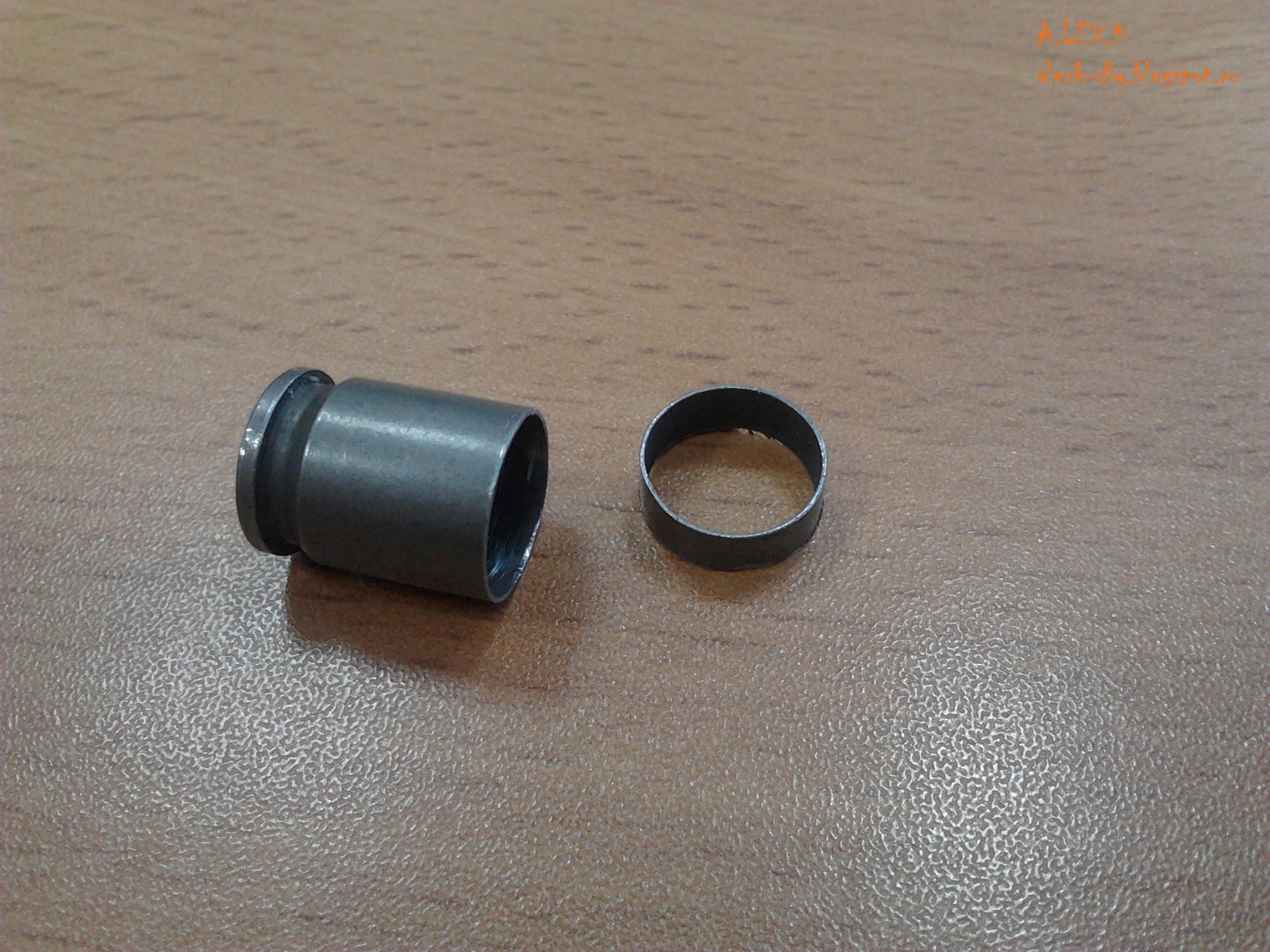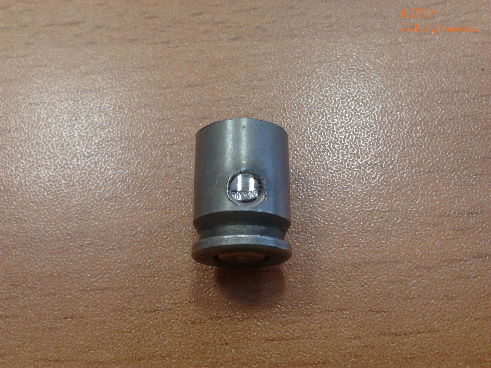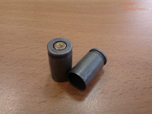 Изначально хотел сделать также как видел в сети. Основание гильзы в том случае накладывалось на корпус, т.к. внешний диаметр одинаковый. Получалось своего рода крышечка)