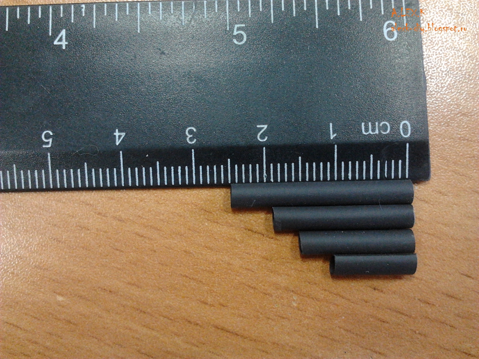 5. Готовим термоусадочную трубку. Я нарезал сначала 4 кусочка, но в итоге использовал только два больших. Устанавливаем на кабель заранее, продеваем через корпус гильзы.