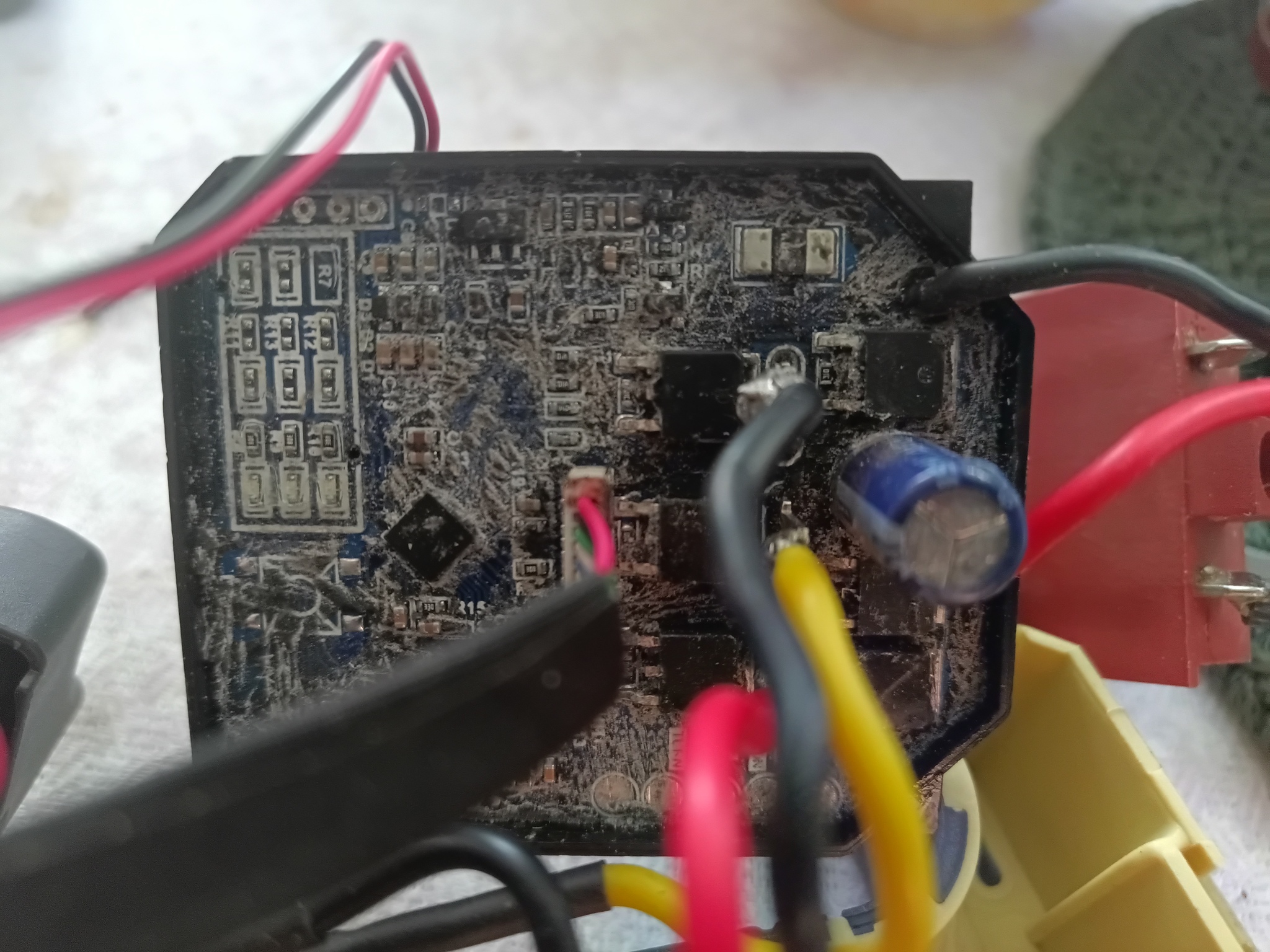 Потом проверил осцилографом выходы фаз — ШИМ есть, но он не только разной скважности, но и с разным размахом. Ну, думаю, всё, приехали — управление сдохло. Заказал новую плату, благо, в китайских аппаратах всё взаимозаменяемо.