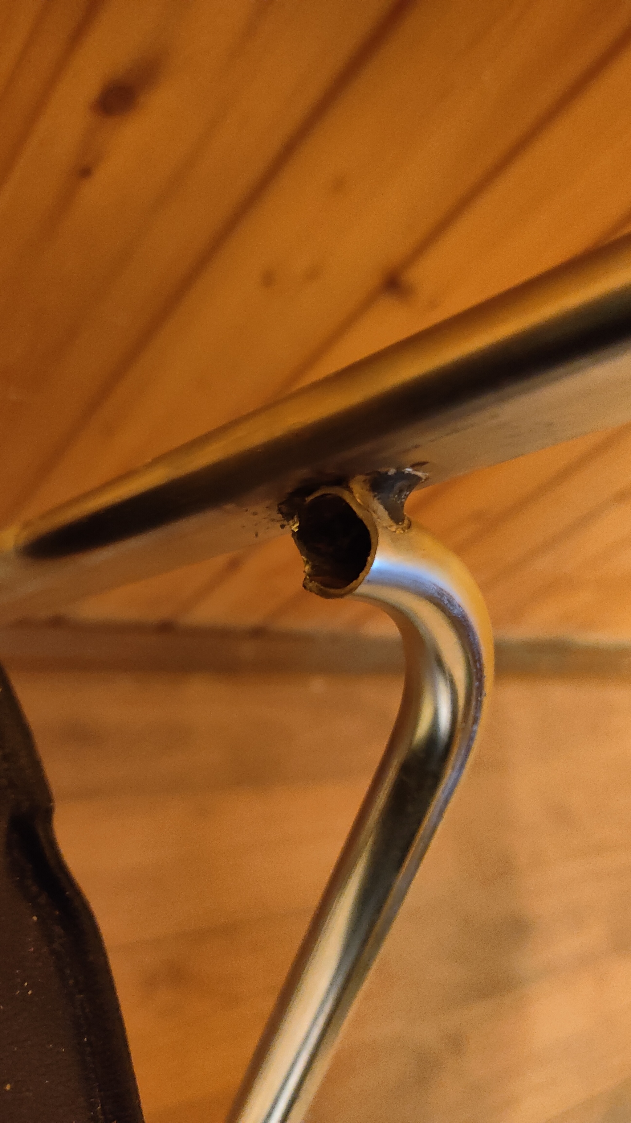Хотел сделать на месте, да не вышло, увожу к себе, немного вот этих мужских занятий, че то порезать, где то надавить, где то покрутить и постучать и... Железка встаёт на место!