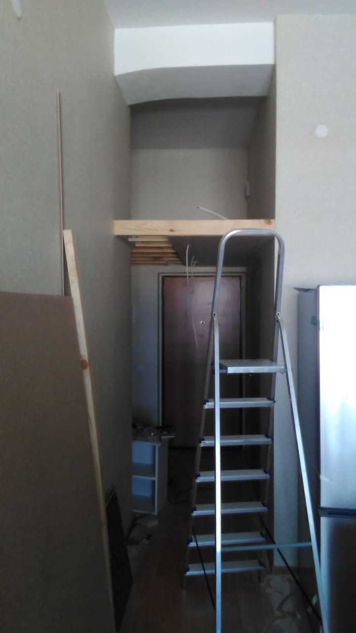 Плюсы: 1)Освобождается место внизу. 2)Разделяется визуально кухня, рабочее место, и место для сна. Когда кто-нибудь приходит в гости, необязательно заправлять постель).. ее не особо видно.