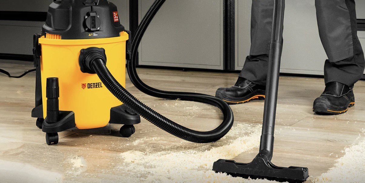 Заранее позаботьтесь об уборке мусора. Тут помогут и прочные мешки из полиэтилена, и пылесос. Конечно, можно использовать старый бытовой пылесос, но гораздо удобнее взять специализированный строительный или хозяйственный пылесос, который будет вместительнее, мощнее (всасывает камни, кусочки бетона, кирпича, гвозди и прочие строительные отходы), а также позволяет собирать влажный мусор и грязь (есть насадка для сбора воды). В моём случае это DENZEL RVC20, но есть и более функциональные/дорогие модели с баком из нержавейки, или оснащенные розеткой с автоматикой, позволяющей включаться вместе с перфоратором. Кстати, не помешают запасные мешки (я использую универсальные) и насадки для дрели, перфоратора ли циркулярной пилы с целью сбора мусора/стружки/опилок при работе.