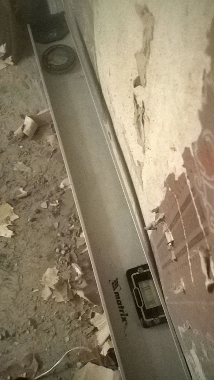 Далее тот же мастер, что штрабил сены был приглашен на штукатурку одной стены, которая была люто кривая и выравнивание пола.