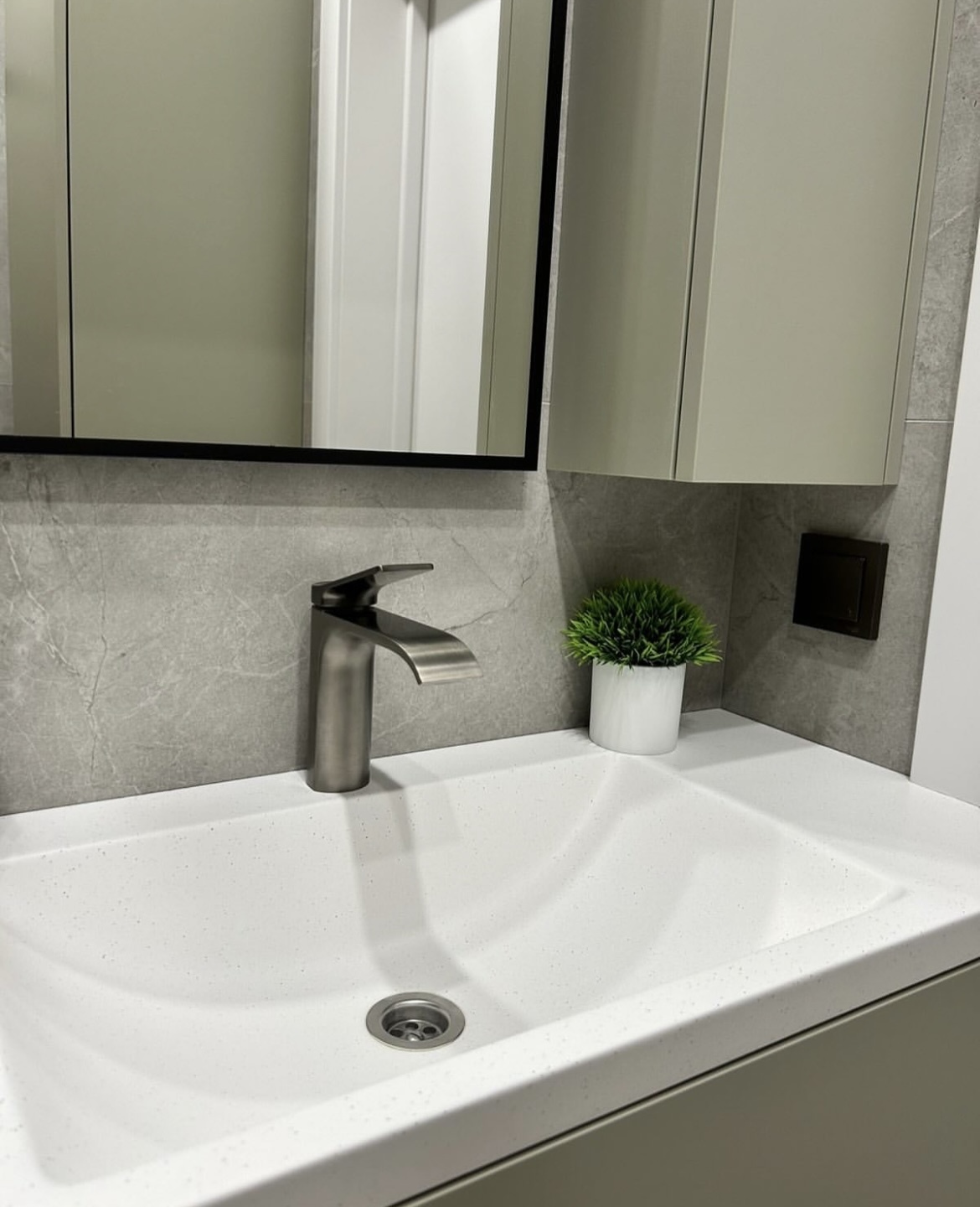 Установка сантехники, мебели, натяжного потолка, завершило картину