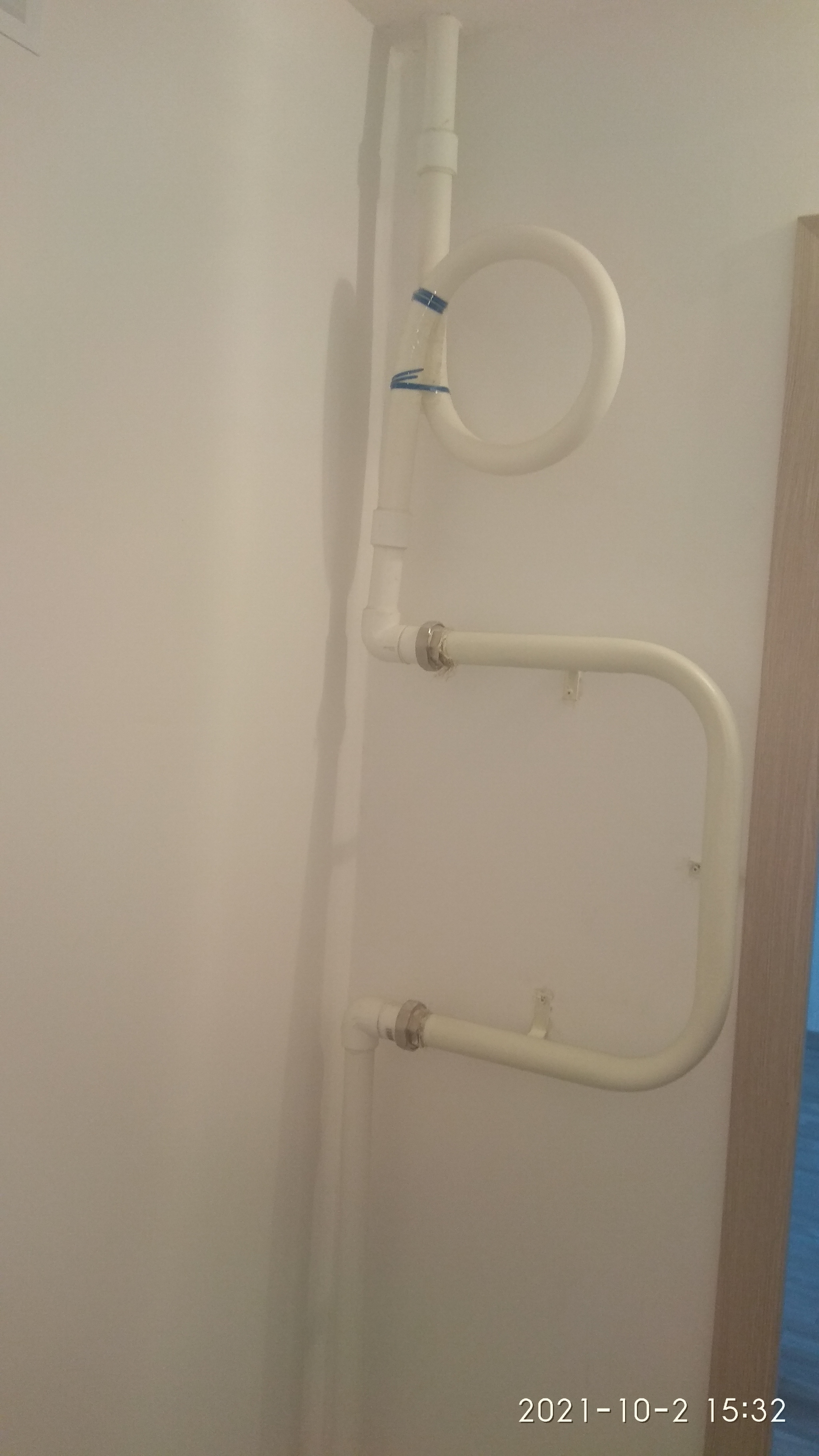 Еще в процессе планирования была мечта убрать стиралку с кухни в ванную. Для этих целей присматривали специальную плоскую раковину над стиралкой, чтобы сэкономить место. Такие специальные раковины в магазинах стоят овер дофига денег, соответственно таких сумм в нашей смете не было заложено. Поэтому шерстили авито в надежде найти нужную раковину подешевле. И таки нашли плоскую Santek с плоским сифоном за 3,5к(?) Лежала она в углу комнаты пару недель, ждала своего часа и таки дождалась. После готовности пола сначала примерили раковину – норм. Измерили ширину, глубину, высоту стиралки – норм. Кое-как вытащил стиралку (пришлось подразобрать кухонный гарнитур). Дотащил до прохода в коридор и тут подвох. Стиралка не пролезает между холодильником и гарнитуром! Ппц. Даже если открыть дверцы холодильника, то все равно не хватает пару см. Попытался героически приподнять стиралку над гарнитуром, но силы мои меня подвели. Единственное решение, пришедшее в голову, это вытащить холодильник в коридор после входа в ванную. Окей, вытащили кое-как холодильник, перетащили стиралку и тут нас ждал сюрприз. Ошибка в расчетах. Неучтенные данные. Когда все измерял я не учел, что сзади еще идут трубы канализации и водопровода. Поэтому стриралка торчит примерно на 5 см. Ппц! Ну тут сам косяк.