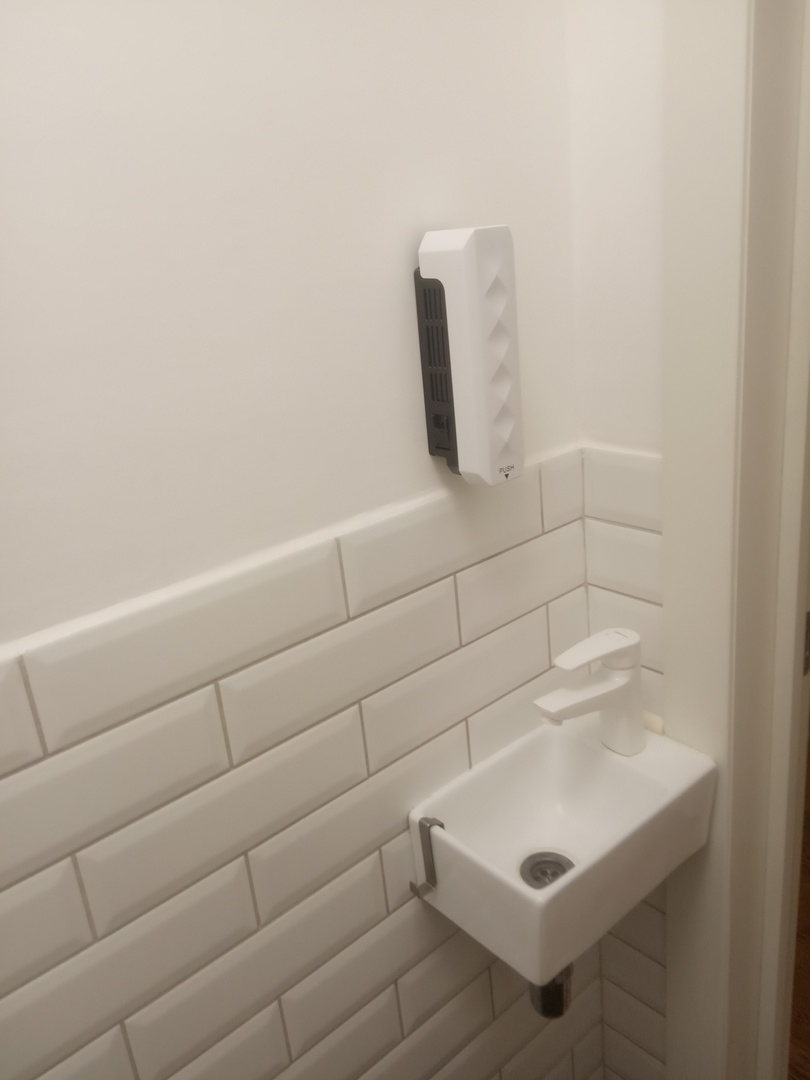 Также случилась неприятность с ванной. Тут я немного в ступоре. Ванная была установлена по уровню, т.е. внешние бортики горизонтальные (уровень переворачивал)), но дно не скошенное к сливу, т.е. вода после использования ванной оставалась в ней. В связи с чем после 4-х лет(и еще непонятно сколько лет до нас) использования на дне образовался овал ржавчины, который никаким чистящим средством не смывался. Да и в процессе снятия плитки одна плитка все-таки упала на ванную и получился нехилый такой скол. Поэтому было решено заказать восстановление эмали. Был найден чувак с авито, договорились о цене и времени и день был на это отведен. В принципе результат получился очень неплохой, выглядит чисто аккуратно, почти как новая. Единственное я поторопился и заказал сию процедуру, когда были сделаны только стены вокруг ванной, но не были готовы остальные. Поэтому остальные работы пришлось проводить максимально аккуратно, чтобы не задеть свежевосстановленную ванную.