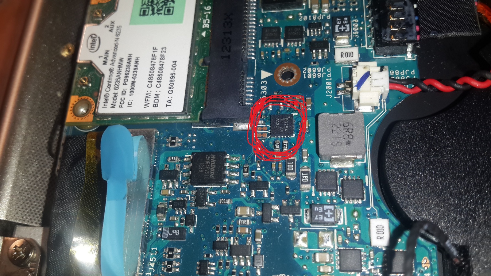 Так, для начала сдохла родная зарядка от короткого замыкания. С зарядкой возиться не стал, подкинул другую, но с теми же параметрами. Ноут все равно не включился. Под микроскопом увидел, что разъем питалова, одна из ног, отвалилась. Пропаял и ноут включился. Для того чтобы отслеживать потребление ноута, я подпаял провода от лабораторного источника питания. При включении с батарейкой ноут жрал 0,5-0,8 А, что говорит о том, что ноут не заряжается. Винда говорила, что батарея заряжается, а по факту она не заряжалась.