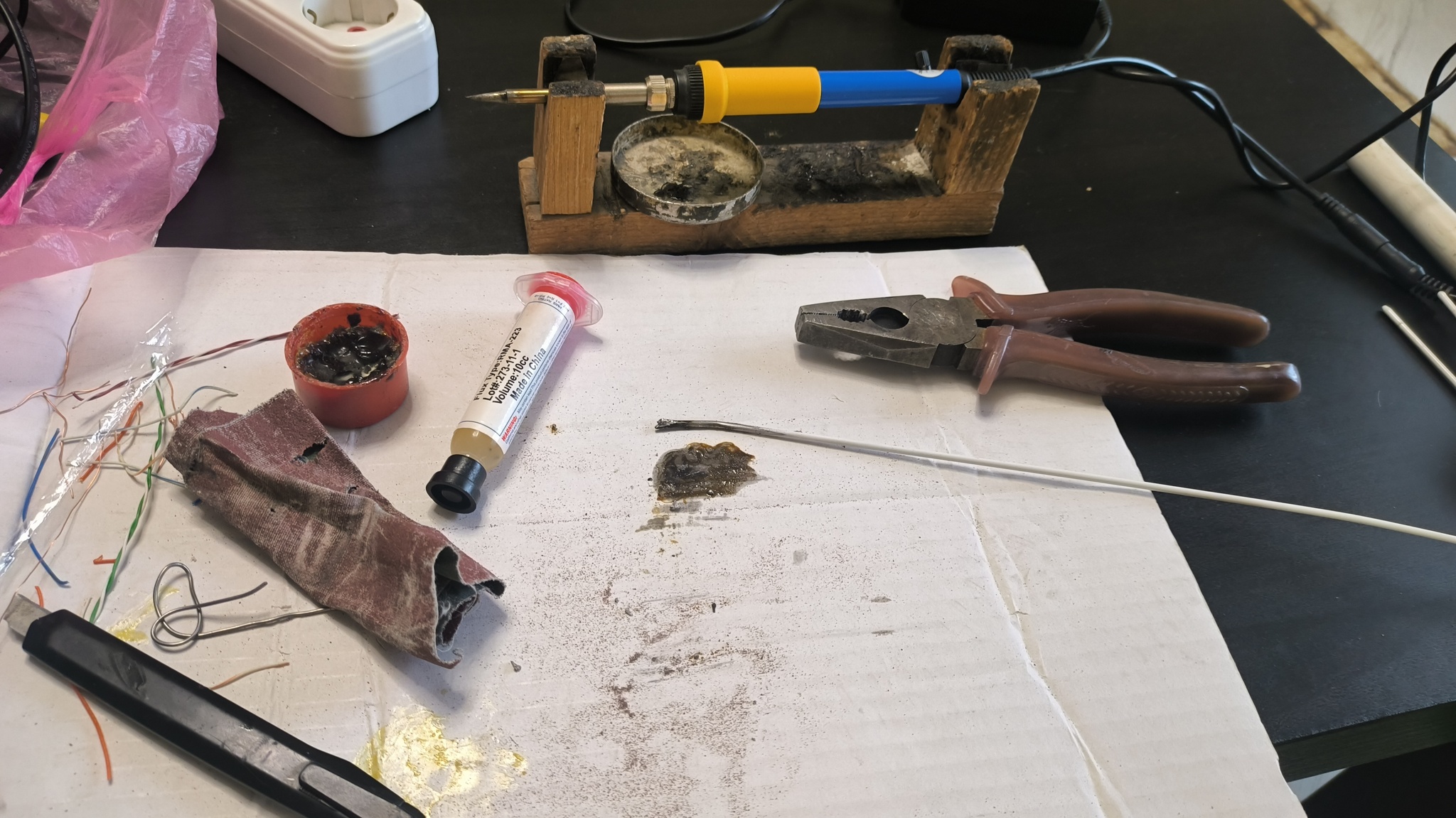 Всем привет. Знаю на Пикабу сидит много мастеров с руками из плеч. Подскажите, как лучше отремонтировать зонтик пляжный. Отломилось ушко, за которое крепится спица. Пытаюсь залудить и запаять проволочное самодельное ушко. Но залудить нормально не получается. Канифоль которой всегда паял не берёт. Купил что то более современное, но тоже фиаско:-( Что я делаю не так? В конце концов вроде припаял, но сомневаюсь в надёжности соединения.