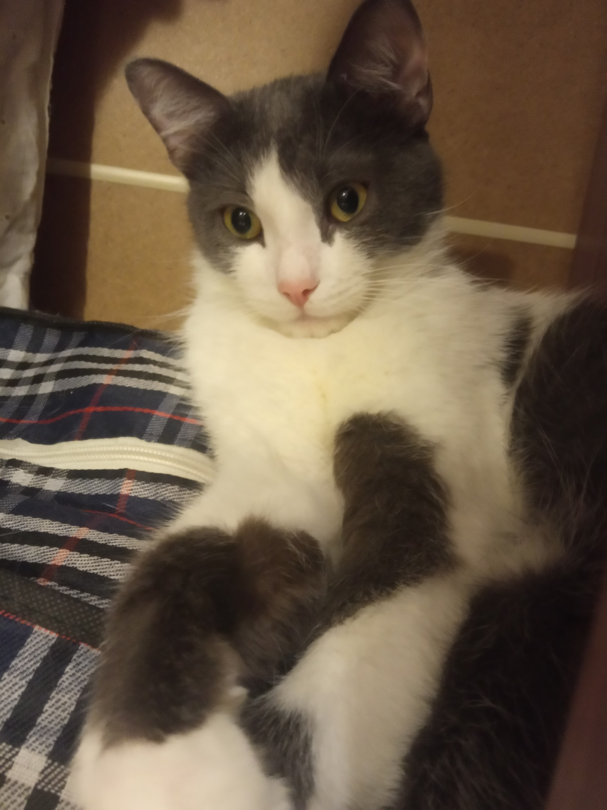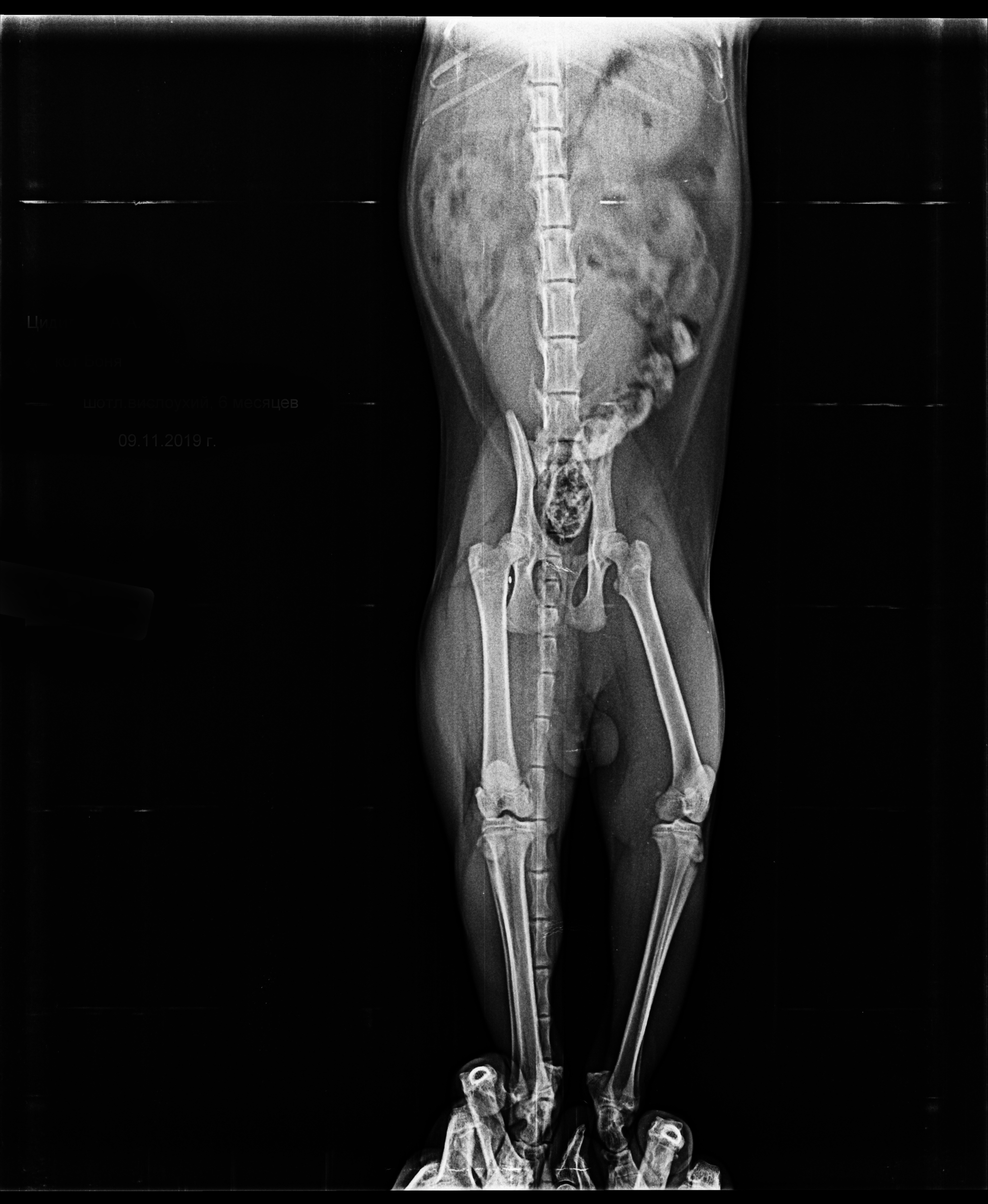 Вот как-то так выглядит кот напросвет. Теплоты там особо не видно, зато есть целый комплект косточек и перелом четвертой пястной кости.